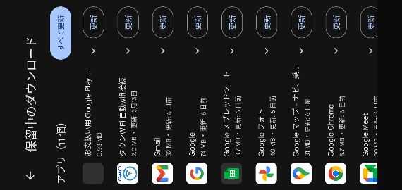 先日14個のアプリの更新をしたばかりなのに、また11個もの更新が有りました、ネットで検索すると月に 200M~400Mくらいのデーター量がアプリの更新に使われている様です。