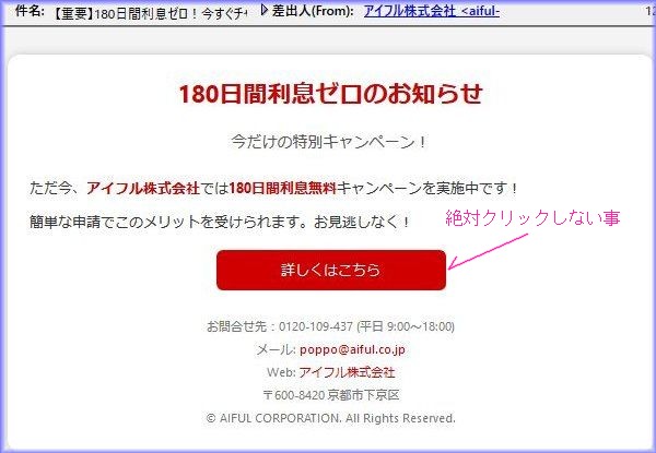 本日届いた迷惑メール、絶対にアクセスやクリックは、しない様にしましょう。