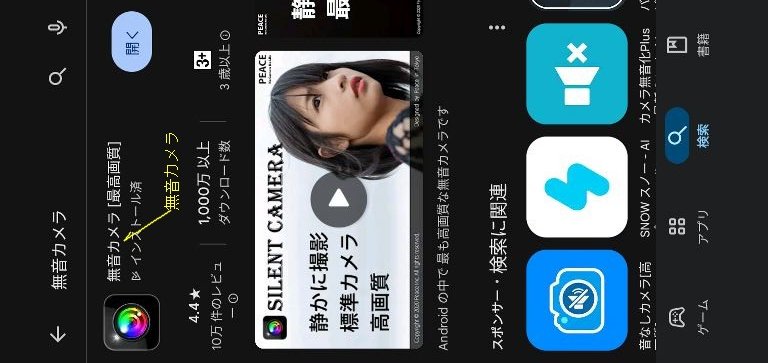 Playストアで、無音カメラを検索