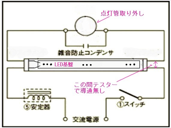 少しでも電気の知識がある人には、この状態で点灯するのが理解出来ないのではと思います、当然こちらも理解できません、それに片線しか配線してない抵抗らしき物は何の為に付いているんでしょうね。