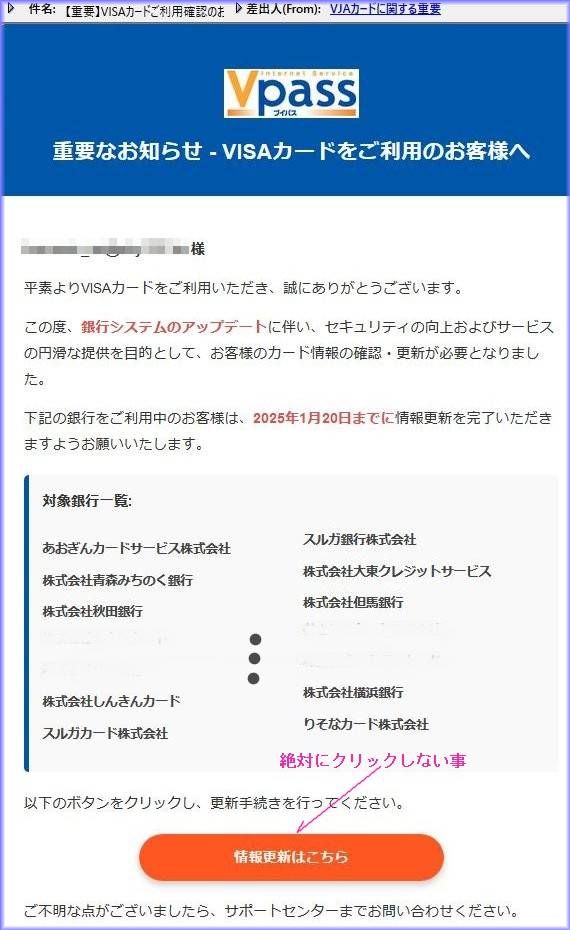 本日届いた迷惑メール、絶対にアクセスやクリックは、しない様にしましょう。