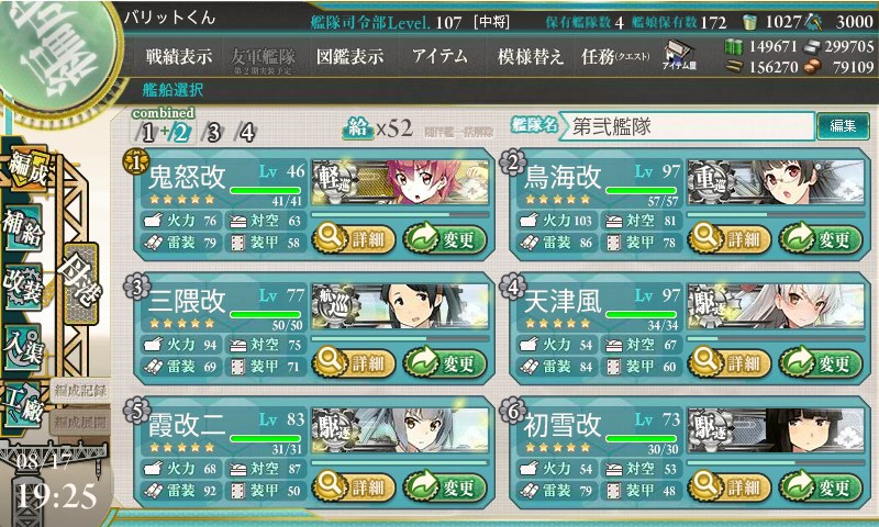 史実艦が7隻いなきゃなんで編成にかなり悩んだよ。