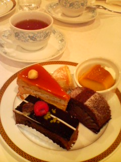 おひさしぶりのMちんと、パレスホテルのデザートブッフェに行ってきた。写真はイマイチだけど、味はほんとにおいしかったぁ。豊富な種類のケーキひとつひとつが堅実に手堅くおいしいのだ!これで¥2310(税サ込み)はお得すぎるよ。あえて注文をつけるなら…シュー系がなくて見た目に寂しかった(泣)¥2500にしてもいいから、プチシューの山を一緒に並べてほしいな。ワタクシ的にはほぼ一年ぶりのケーキでした。意外?ほんとにこの年になるとそんなに食べたくならないんだもん。だからといって「今日は一年分だからいいの♪」とバクバク食べるのも大人としてどうなのか。だって久しぶりのガチンコ毒入り女子トークが胃の働きを3倍パワーアップさせるのさ。初参戦して攻略法もじっくり研究できたしまた早いとこ荒らしに行こうね、Mちん。