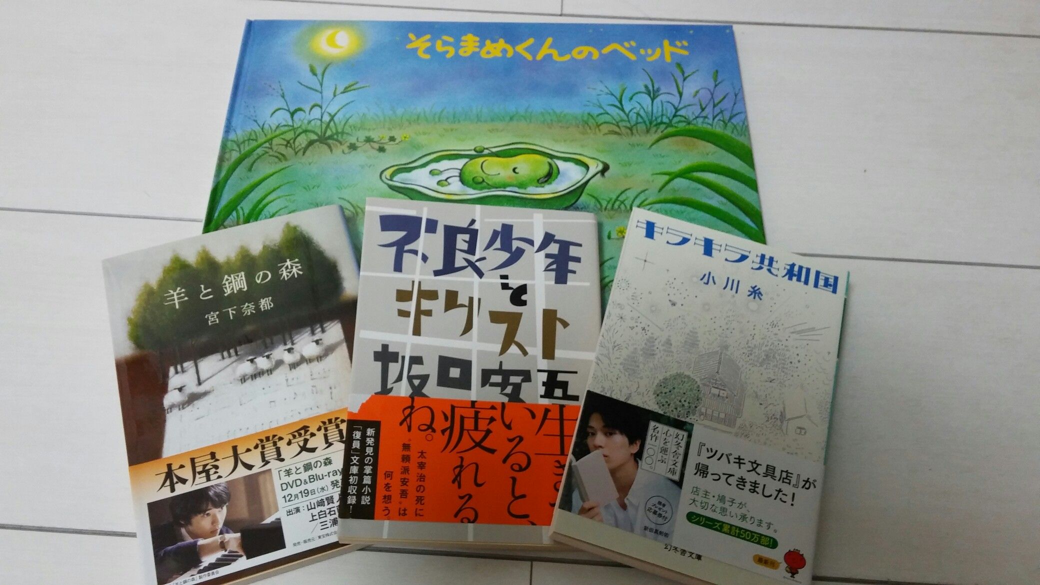 今日は午後から八尾のアリオに買い物に行きました。久しぶりに行くと新しいお店が沢山入っていて祭日ということもあるのか人がいっぱいでした。 3階の本屋さんの丸善で今日買った本4冊✨。 そらまめくんのベッドは和むお話で可愛かったです~☺。ペリカンの家の本棚に置きます~✴。読んでみてください~。 羊と鋼の森とキラキラ共和国は図書館で借りて読んで良かったので自分の本棚にも欲しいと思って買いました。 坂口安吾はこの本の一番最初にあった『恋愛論』の始めの方を立ち読みしていたら面白いなーと思って買いました(^o^)v。 堕落論は以前読んで面白かったので恋愛論も読んでみよーと思いました✨。 恋愛って論じれるんかなと興味津々(笑)。