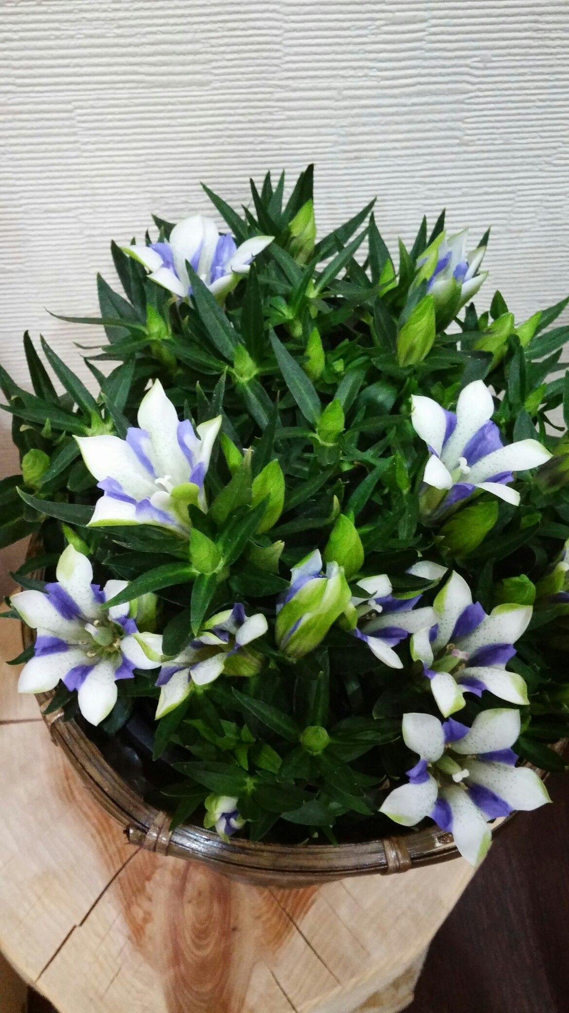 今月のお花はりんどうです♪。 変わった模様の花びらですo(^o^)o。