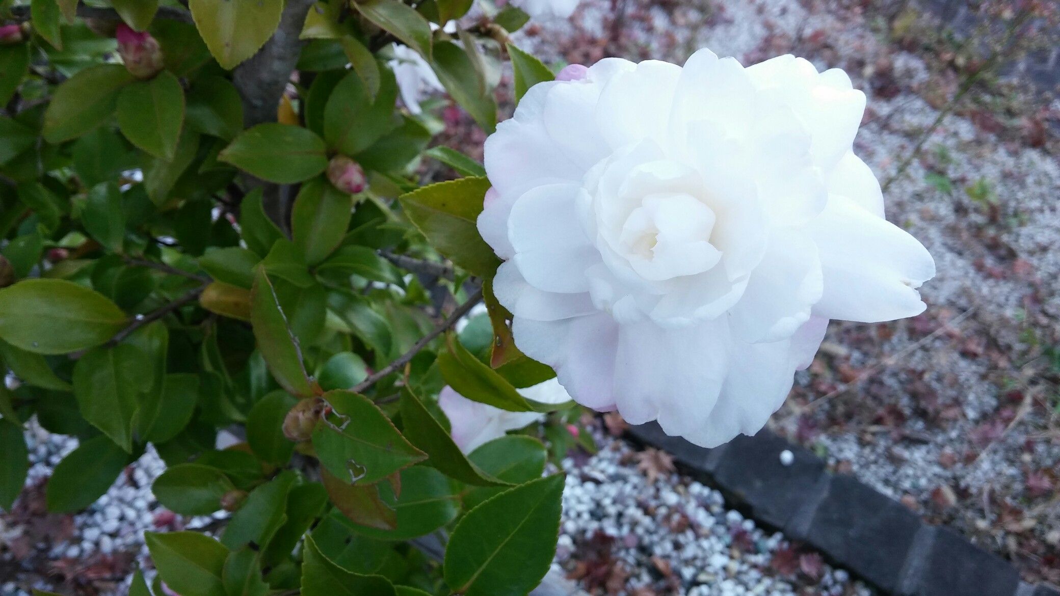 今日はお墓参りへ行きました。 白く綺麗なお花が咲いていました❗。 これが山茶花かな~と思いました。 花びらが透き通っているかのような、 白くて美しい花でした✨。 もう1つ小さく可愛らしいお花も。 今日は昼間は温かく、過ごしやすい一日でしたo(^o^)o。