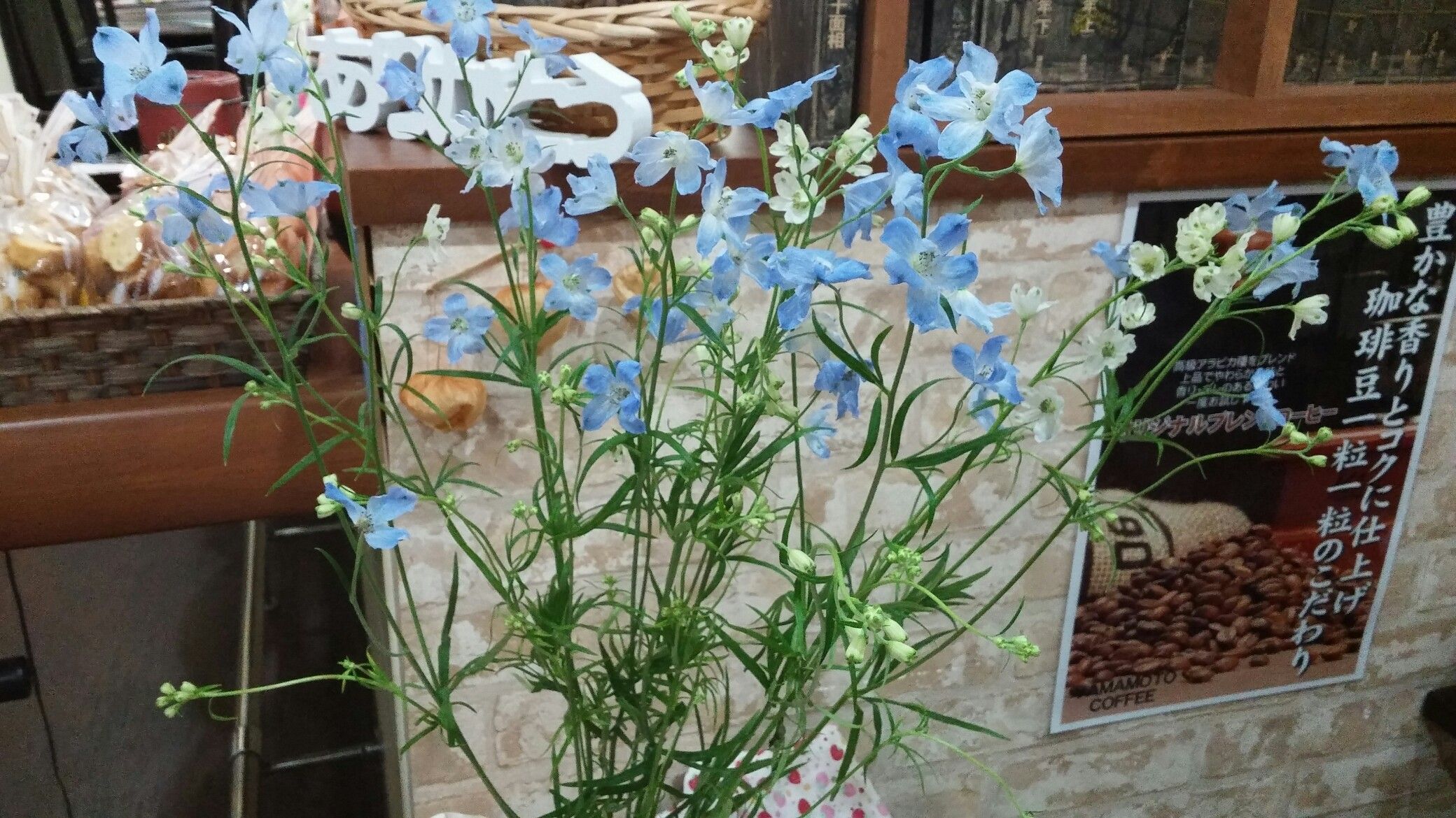 近くのお花屋さんで見つけた青いお花。 お店に飾ろうと思い、買ってかえりました❗可憐な感じがします✨。