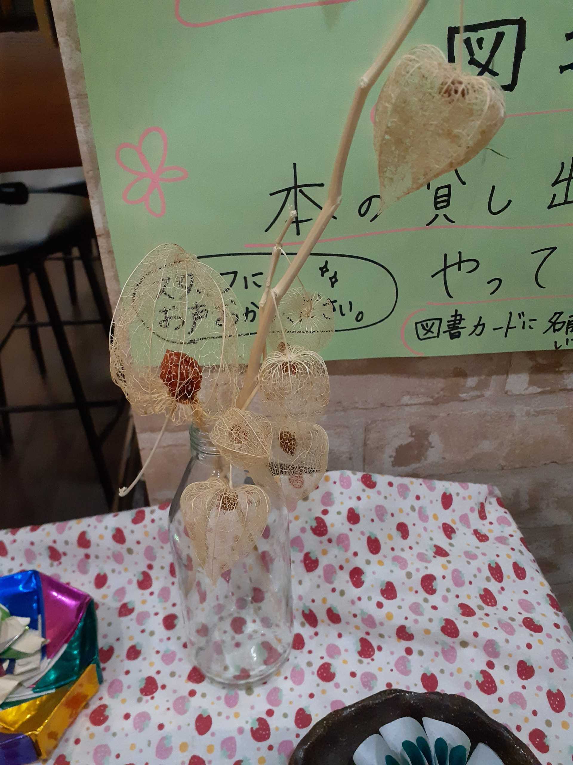 お客様に戴いた鬼灯の飾り。 水にしばらく浸けておくとこんな綺麗な飾りになるんだって☺️ 繊維が細かくて中に赤い実がなってる✨