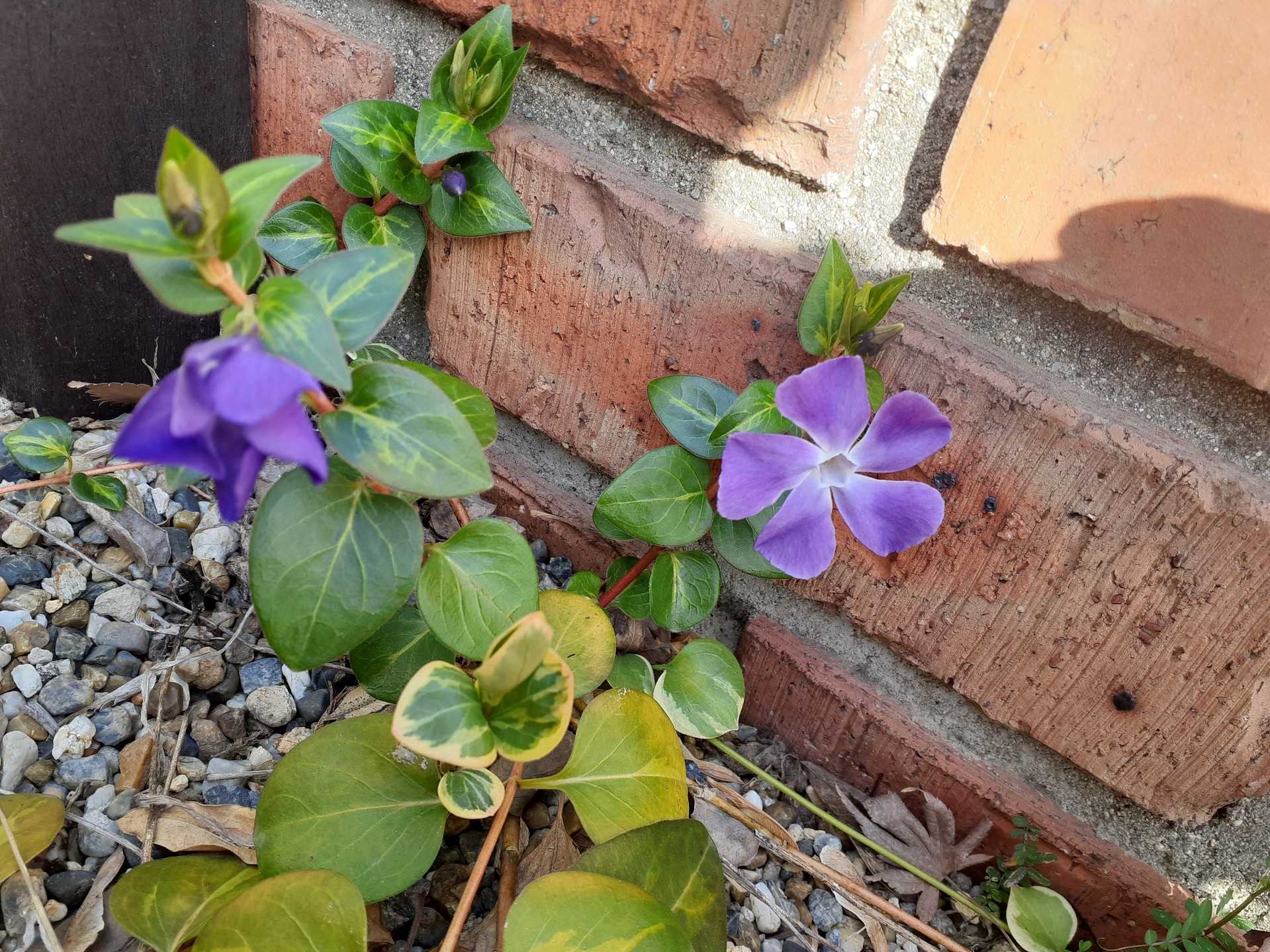 今日庭に咲いているのを発見した ツルニチニチソウ。 ツルが勝手に伸びてきて増えてきた❗ 水仙もうすぐ咲きそう❗ 種から育てたレタスもモリモリ育ってきた❗
