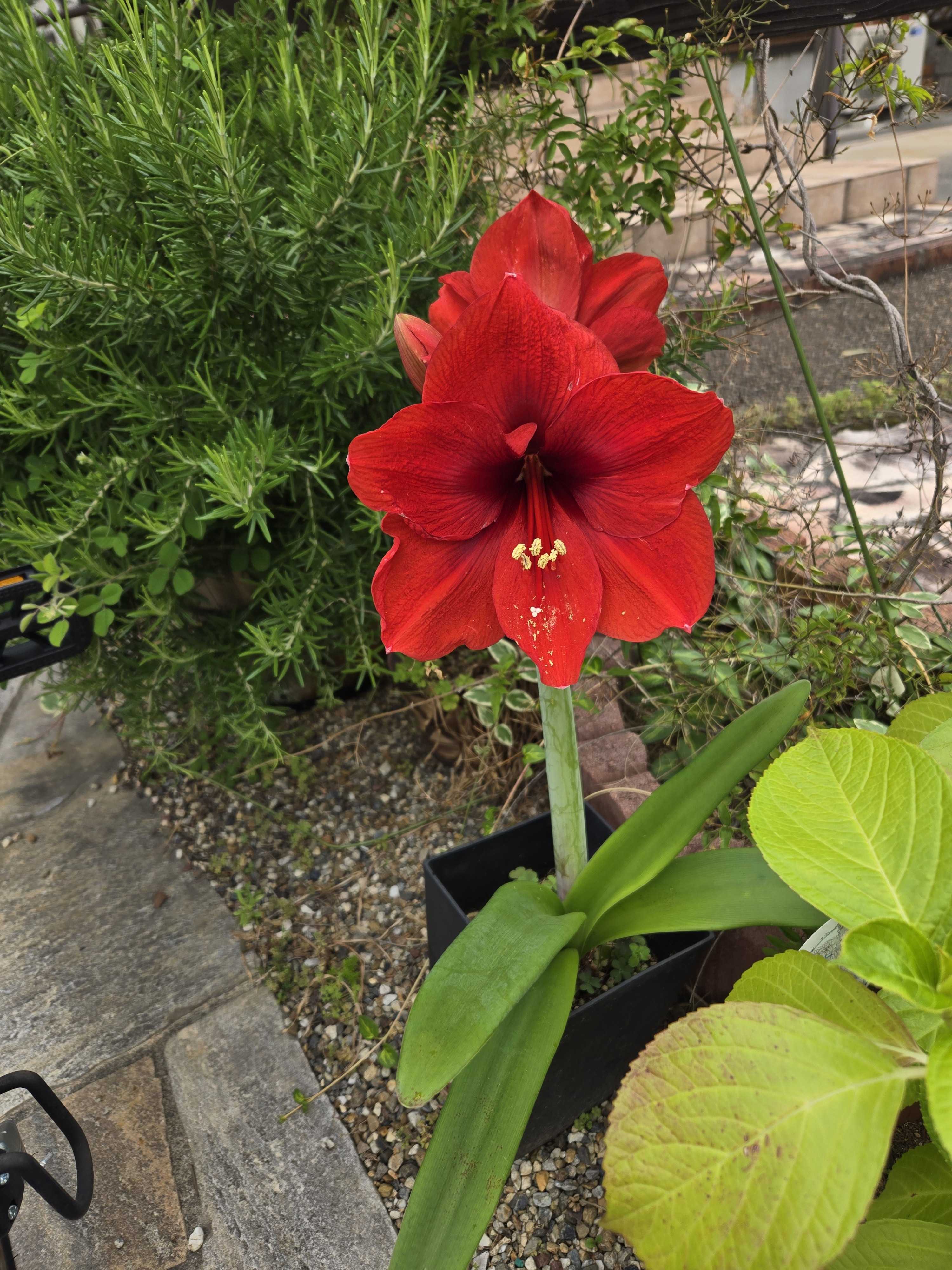 赤いアマリリスに続いて、ピンク色のアマリリスも咲き始めました🎵。昨日住道のズンチャッチャ夜市に行くときに野崎駅から清美さんと30分くらい歩いて住道駅へ行きました。川沿いや住宅街を歩いていると色んな家があり庭があり、色んなお花が植えられていて楽しかった。知らない駅で降りて散歩がてら歩くのも面白いだろうなと思いました。アマリリスの花が咲いているお庭が沢山ありました。