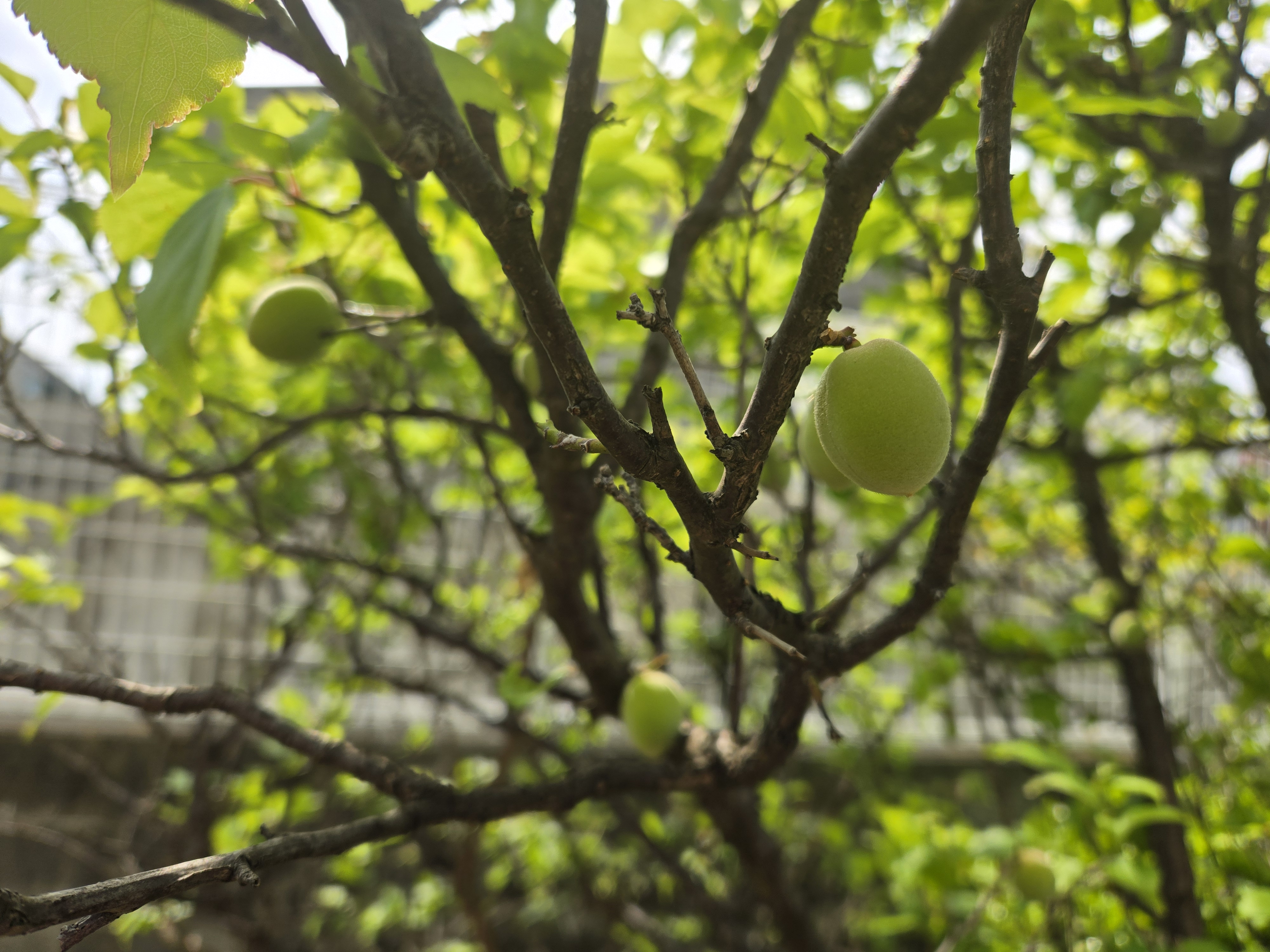 5月なので、そろそろオオヤマレンゲが咲いている頃ではと思いテクテク歩いて見に行ってみると強剪定されていて新しい葉っぱが出ているだけで花は一つも咲いていませんでした。その代わりに梅の木に梅の実なってるの発見した❗小ぶりだけど美味しそ😃