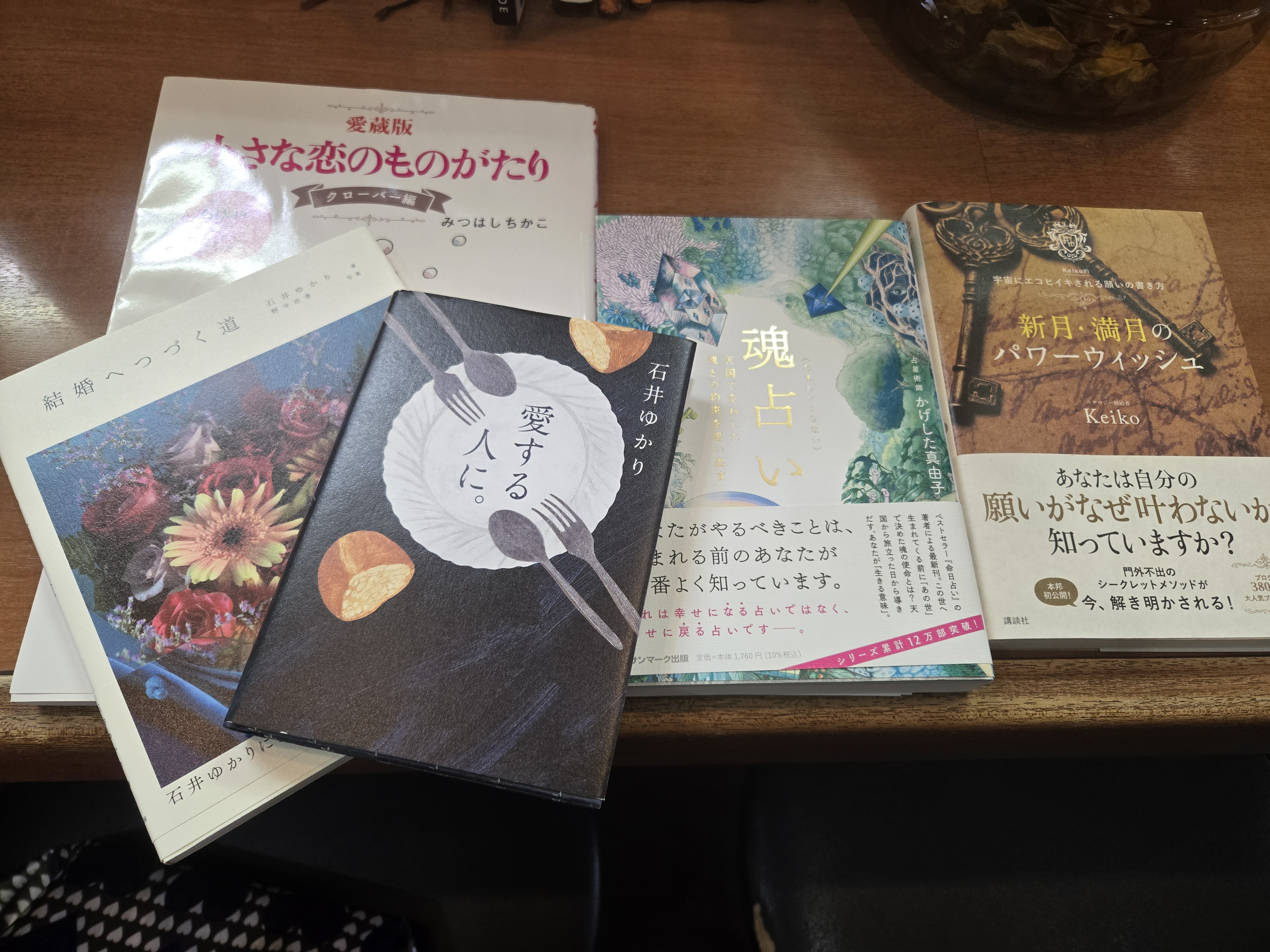 今日お客様が素敵な本を5冊寄贈してくださいました。私が好きそうな本を選んで持ってきてくださったそう。すごく嬉しい🎵ありがとうございます~✨スピリチュアル系はほとんど読んだことないんだけど占いは好きだから興味湧きます、読みます。いまこの5冊の中で『小さな恋のものがたり』という漫画を読み始めました。すごくほっこりします。ペリカン図書館に置きますので、皆様もぜひ🎵