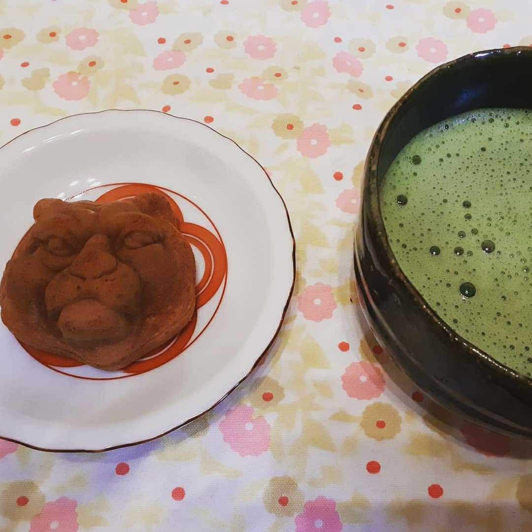 このお饅頭、抹茶によく合う。