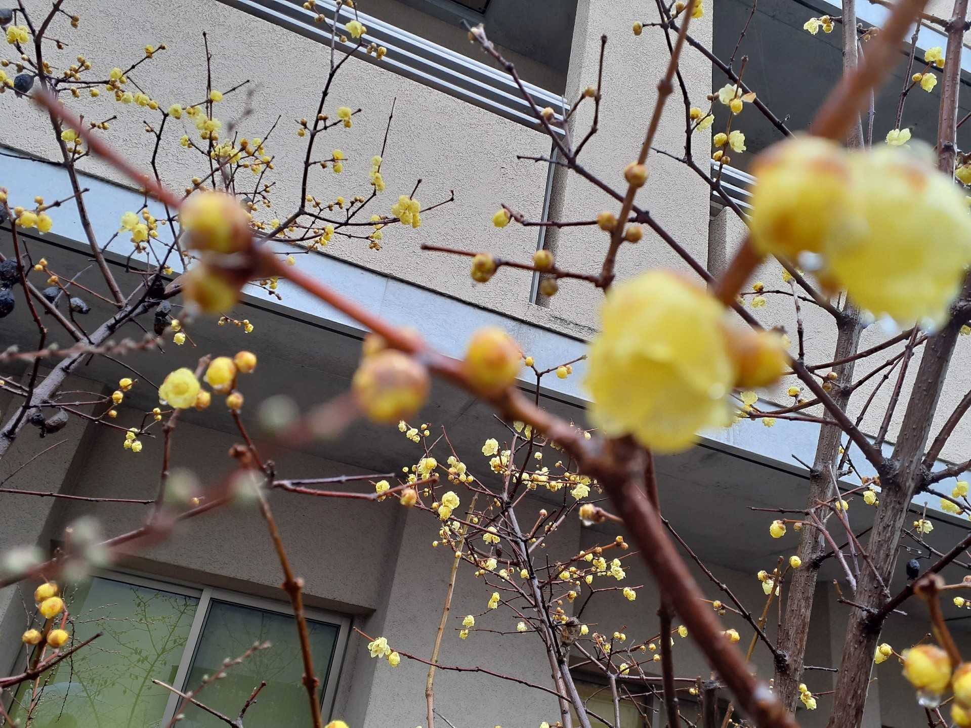 石切参道を歩いているとロウバイが咲いていました❗
