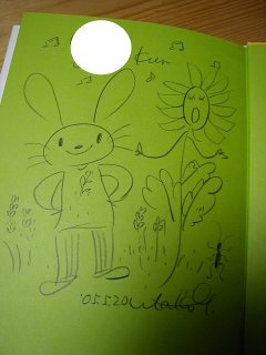 うふ。今日は本当に待ちに待った日でした・・・。私の憧れの人(男性ではないところが残念!?)・・「カレル・チャペック紅茶店」のオーナー山田 詩子さんによるティーレクチャーの日だったんです♪確か去年「初夏のティー・レクチャー」にてその模様は書いたかと思うのですがその後1回またあったものの予約し忘れ翌日電話したらもう満員で参加できず、今回は忘れないよう、万全に準備(笑)。しかしショップオープンの10時30分に電話しても繋がらず45分にやっと通じたものの午前の部は満員、午後の部がやっとこさセ~フで取れました。いや~去年より競争率はるかに高くなってる~(汗)。山田さんは最近絵本作家としても知られているのでその影響も大きいんだろうな・・。や~しかし席がとれてよかった。友達のアクアちゃんの分も取れてホッ。子供たちも同席です・・。テーブルの上にはすでにクッキーやパウンドケーキが☆今回も色んなお茶、美味しく頂いてきました♪バナナのアイスティーやセリンボン茶園、ゴパルダラ茶園のオーガニックティーなど・・・普段中々口にしないようなお茶がいただけるのも楽しみのひとつです。今日の山田さんは最初少し緊張していたとかでいつものテンションが低めでしたが後半かなり飛ばして吉本系ギャグ飛ばしていました・・・・・。イラストの可愛らしさとはうらはら?な。ああ。このギャップが好きなんです~。せっかくなのでと絵本も購入してみました。子供が選んだ「こうさぎピピンのたんじょうび」。山田さんの本はすべて欲しいほど、私はファンなのですが、今日は購入した絵本に直筆のイラストを添えて頂きました・・・・。感激☆子供も「・・・このひと、すごい絵、じょうずだね」と山田さんの筆(鉛筆だけど)さばきをまじまじ見つめていました。「すごいね・・・すごいね・・」と言いながら・・・。夜寝る前に絵本を読んだのですが、私はイラストは素敵だけど正直中身まではそんなに期待してなかったのです(最近のイラストが素敵な絵本って内容はそんなに盛り上がらない・・というのが多い気がする・・・私だけ?)しかし、子供がとても反応してすごく笑って聞いていました。これだけでもうOKというか・・・。ちょっぴりスリリングさあり、笑いあり、山田さん作詞作曲のたんじょうびの歌あり・・かなり引き込まれる内容です。さすが詩子さん~。 2人のお子さんのママですもんね。子供の心もがっちり掴んでいます。子供「オレもこんな絵描ける様になりたい・・・!」ですって。おお~~!期待してるよ~(笑)。今回のおみやげと描いて頂いたイラストです(名前も入れて下さった)。・・・次回も行くわよ~(笑)