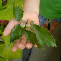 仕事で枝を何本か用意しなければならなくなったので(ってどんな仕事!?・・笑)、近所の雑木林に行って来ました。以前から子供が保育園でお散歩コースで出掛けている場所で、前々から「ママの好きそうないい枝があるんだよ!」と子供から聞かされていたので、18インチの自転車に得意げにまたがる彼に先導されつつ自転車で行って参りました。台風の後もあり、しけった枝、きのこ、朽ちた枝や蜘蛛の巣をよけながら、なるほど、子供のいうとおり、いい枝たちがゴロゴロと転がっている・・・・(笑)桜などは艶もあり大変美しい。少しぬめった斜面をあがると、「ママ~~!!!」と子供の声が。振り向いてみると、「いいもの、みつけたよ、ホラ!」と言って手のひらにあったもの。それはまだ青々としたどんぐりの赤ちゃん。目深に帽子をかぶって丸々と愛らしい・・・・なんとキュウト。子供も「可愛い。可愛い」と大喜び。実もあちこちに転がっていました。もうすぐ秋ですね・・・・5本ほどいい感じの枝を拾ったのですが、帰りに下にお住まいのおじいさんに「この枝もいいよ、もっていきな!」と言って頂き片手にわっさりと枝をもつ私・・・(汗)大通りに出たときはちょっと恥ずかしかったなあ・・。お風呂から上がって、テーブルにあったどんぐりを微笑みながらまじまじと見つめ、「やー、今日はいいもの見つかってほんとよかったねぇ・・」としみじみとつぶやく子供の姿をなんだかいとおしく感じる私なのでした。