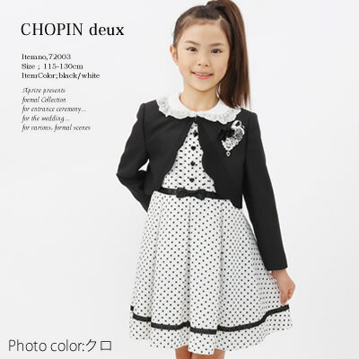 シフォンワンピースの清楚なアンサンブルスーツセット フォーマルスーツ CHOPIN 女の子スーツ 卒園式 入学式 結婚式 発表会 子供スーツ トドラーサイズ:115cm/120cm/130cm 72003 メーカー希望小売価格 9,800円 (税込) 価格 7,500円 (税込) 送料込 10倍 750ポイント 大きさ × ジャケットカラー 115cm 120cm 130cm クロ シロ サイズ [115サイズ] ボレロ:肩幅28cm / 胸囲70cm / 袖丈39cm / 総丈26cm ワンピース:肩幅26cm / 胸囲66cm / ウエスト61cm / 袖丈16cm / 総丈59cm [120サイズ] ボレロ:肩幅29cm / 胸囲72cm / 袖丈41cm / 総丈27cm ワンピース:肩幅27cm / 胸囲68cm / ウエスト63cm / 袖丈17cm / 総丈62cm [130サイズ] ボレロ:肩幅31cm / 胸囲76cm / 袖丈45cm / 総丈29cm ワンピース:肩幅29cm / 胸囲72cm / ウエスト67cm / 袖丈18cm / 総丈68cmセット内容 ボレロ、ワンピース、コサージュ 素材 ボレロ:ポリエステル100% ワンピース:ポリエステル100% 備考 コサージュは取り外し可能です。 キッズフォーマル APRIREpesfisの本棚 楽天市場レディース・メンズ楽天キッズ・ベビー・マタニティ市場シフォンワンピースの清楚なアンサンブルスーツセット フォーマルスーツ CHOPIN 女の子スーツ 卒園式 入学式 結婚式 発表会 子供スーツ トドラーサイズ:115cm/120cm/130cm 72003格子スカートのアンサンブルスーツ フォーマルスーツ CHOPIN 女の子 卒園式 入学式 子供スーツ トドラーサイズ:115cm/120cm/130cm 72004【30%OFF】115cm 130cm 子供用 女の子 キッズ ガールズ スーツ フォーマルスーツ 卒園式 入園式 入学式 セレモニー♪【CHOPIN】ガールズスーツ(72004)110cm 120cm 130cm 子供用 女の子 キッズ ガールズ スーツ フォーマルスーツ 卒園式 入園式 入学式 セレモニー♪【CHOPIN】黒無地ジャンパースカートセット(81711)140cm 150cm 160cm 子供用 女の子 キッズ ガールズ スーツ フォーマルスーツ 卒業式 入学式 セレモニー♪【CHOPIN】ブラウス風カットソー&スカートセット(22700)