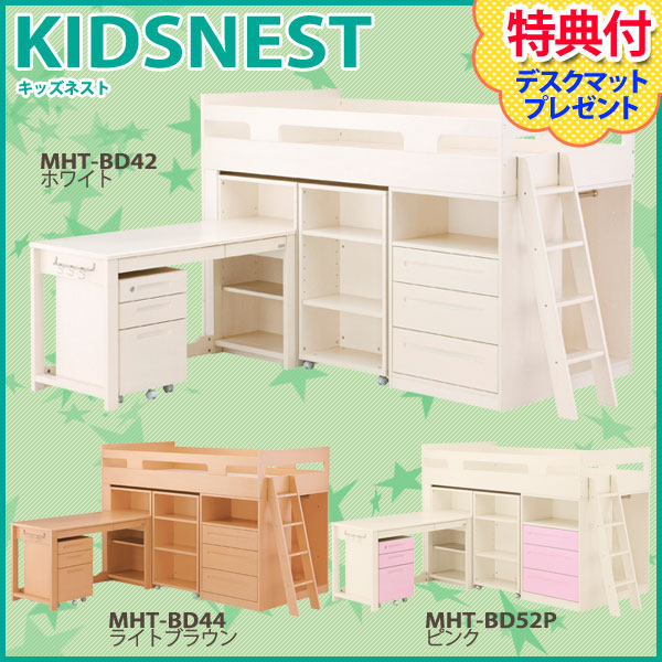 【送料無料】 2013年度 イトーキ 学習机 / 学習デスク キッズネスト MHT-BD42 MHT-BD52P MHT-BD44 ベッドデスク 特典 デスクマット付 KIDS NEST システムベッド ITOKI メーカー希望小売価格 226,800円 (税込) インターネット特価 134,400円 (税込) 送料込 商品カラー MHT-BD42 MHT-BD52P MHT-BD44 セット内容 デスク ワゴン ベッド ラック(キャスター付) ラック ハンガーラック チェスト ハシゴ ライト・チェアは別売りです サイズ( cm ) 全体サイズ(ハシゴを除く)◇幅205×奥行228×高139 デスクサイズ 幅120×奥行60×高さ72 ベッドサイズ 幅205×奥行108×高さ72 ベッド内寸サイズ 幅200×奥行102 ラック(キャスター付)サイズ 幅60×奥行30×高さ96 ラックサイズ 幅60×奥行30×高さ96 ハンガーラックサイズ 幅62×奥行45×高さ98.5 チェストサイズ 幅69×奥行45×高さ98.5 仕 様 天板材質:パーティクルボード ハンギングバーフック キャスター付きラック:可動棚2枚 ラック:可動棚2枚 スノコ 個口数:10個口 送 料 *-送料無料--ただし、北海道、沖縄、離島は別途料金がかかります。お気軽にお問い合わせください。 「学ぶ・収納する・寝る」が一体となったキッズネストは、子供にとってはまさに自分の城。子ども専用の空間を作ることで、子供の自立心や責任感が養われます。 大きくなっても組み替えて使えます。 ラックはキャスター付きラックのキャスターをはずして、上部に連結することができます。 アイルインテリアエクセルpesfisの本棚 楽天ベストセラー楽天子供部屋市場子供部屋 学習机 子供部屋 イス 子供部屋 ベッド 子供部屋 ライト・照明 楽天インテリア・寝具・収納市場【エントリーでポイント5倍!1月20日23:59迄】選べる特典付★さらにレビューでスペシャルなプレゼント!【送料無料】 2013年度 イトーキ 学習机 / 学習デスク キッズネスト MHT-BD42 MHT-BD52P MHT-BD44 ベッドデスク 特典 デスクマット付 KIDS NEST システムベッド ITOKIレビュー割実施中 2013年度新作 【送料無料】2013年度 イトーキ 学習机 / 学習デスク キッズネスト ベッドデスク MHT-BD42 MHT-BD52P MHT-BD44 KIDS NEST システムベッド ITOKI 【送料無料】【エントリーでポイント5倍!1月20日23:59迄】キッズネスト ベッドセット【送料無料】 2013年度 イトーキ 学習机 / 学習デスク キッズネスト MHT-B42 MHT-B52P MHT-B44 ベッドセット システムベッド KIDS NEST ITOKI【エントリーでポイント5倍!1月20日23:59迄】学習チェア 木製椅子【送料無料】 2013年度 イトーキ 学習椅子 木製チェア KM46-59 KM46-53 KM46-54 KM46-51 KM46-57 ITOKI