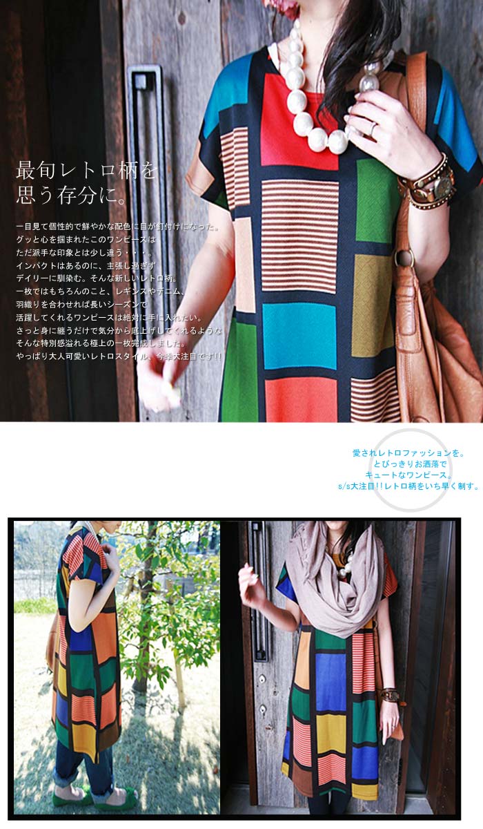 『レトロカラフルが大胆に際立つ、アートな世界観と出逢う。』4月17日10時&20時~の2回発売!レトロな厳選された色味のブッキングした面白さ。レトロ柄ワンピース## 販売期間 2014年04月17日10時00分~2018年09月04日01時59分 価格 4,700円 (税込 5,076 円) 送料別 色 レッドボーダーミックス ブラウンボーダーミックス サイズ:前丈 後丈 胸囲 ゆき丈 Mフリー 88 88 98 24 素材・裏地・透け感:ポリエステル100% 裏地なし 光に当てると若干透けますデザインのポイント 素材は厚地のポリエステル100%で、伸縮性も程よくあり着やすいワンピ。 自然にストンと落ちたゆるやかなラインが、女性の体に添ってくれるデザイン。 首回りは、鎖骨に添うような絶妙なラインです。 ◎袖口は肩から自然に落ちる短めで、品があり、シンプルでスッキリとしたデザインです。 普通のワンピースじゃつまらない方にはお薦め、大人センスの良いお洒落に見せてくれる ワンピースです。antiqua楽天レディース ファッション・靴市場楽天市場内で表示される商品価格は、新旧税率が混在していて、税率変更が未反映の場合があります。正しい価格は各ショップの商品ページを必ずご確認ください。×メール便不可! 『レトロカラフルが大胆に際立つ、アートな世界観と出逢う。』4月17日10時...価格:5,076円(税込、送料別)◎メール便可!『デイリーコーデにヘビロテ間違いなしの風合い抜群ロンT。』4月17日10時&20時...価格:3,024円(税込、送料別)◎メール便可!シャツ 半袖 柄 和モダン『ベーシックなシャツのシルエットに、女性らしく上品...価格:5,076円(税込、送料別)