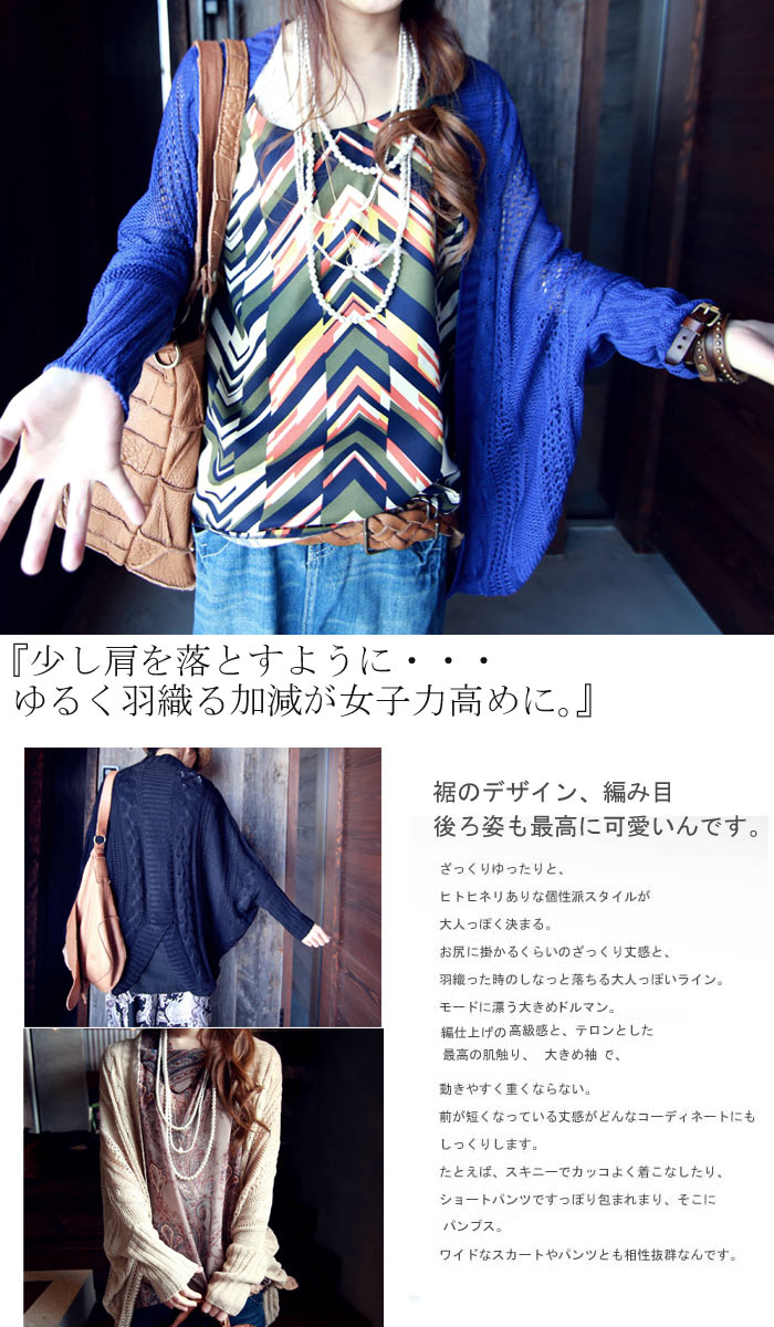 素材、色、シルエット、可愛いを詰め込みました』4月16日10時&20時~の2回発売!シンプルなのにさりげなくセンス良く決まる。ボレロニットカーディガン## 販売期間 2014年04月16日10時00分~2018年10月12日09時59分 価格 2,800円 (税込 3,024 円) 送料別 色 ナチュラルブラック コバルトブルー サイズ: 前丈(肩から) 後丈(肩から) 身幅 ゆき丈(頂点から) Mフリー 70 最短47最長70 154 77 素材・裏地・透け感:アクリル100% 裏地なし編み目から透けますデザインのポイント 素材は軽いタッチだからこれからの季節にとても着やすいです。 シンプルで着回しの効くデザインで、ワードローブのベースアイテムとして 活躍してくれるはず! 編み目から覗く透け感が大人の技ありレイヤードコーデが楽しめます。 インナーを制限せずに気軽に羽織れるのも嬉しいですね!antiqua楽天レディース ファッション・靴市場楽天市場内で表示される商品価格は、新旧税率が混在していて、税率変更が未反映の場合があります。正しい価格は各ショップの商品ページを必ずご確認ください。×メール便不可!『素材、色、シルエット、可愛いを詰め込みました』4月16日10時&20時〜の2回...価格:3,024円(税込、送料別)×メール便不可!『カジュアルなギンガムチェックにレースで絶妙に甘さをプラス…』4月16日10時...価格:4,104円(税込、送料別)◎メール便可!『透ける型押しペイズリーが浮かび上がる、贅沢なこだわり技ありトップス』4月16...価格:3,024円(税込、送料別)×メール便不可!『淡水パールの存在感が手元を彩る。』4月16日10時&20時〜の2回再販!女性ら...価格:3,024円(税込、送料別)