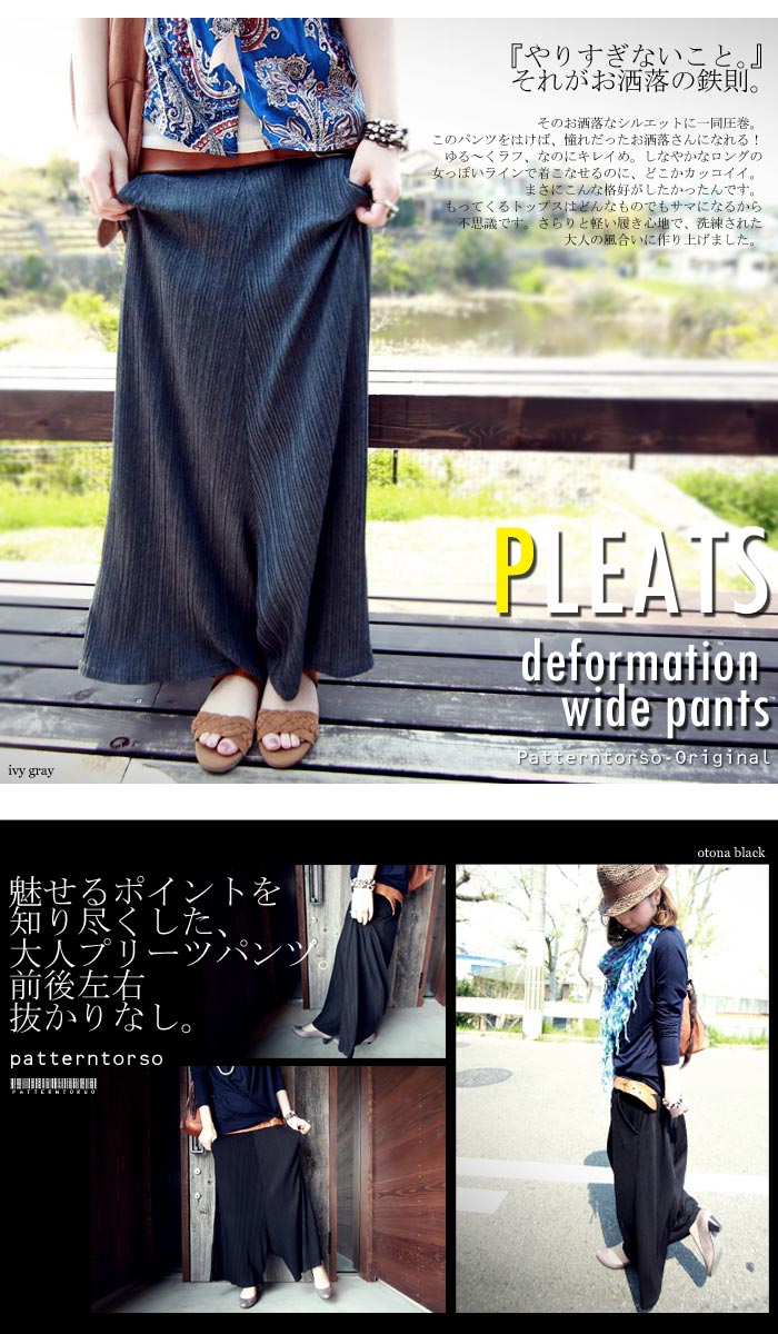 『劇的に美しく流れるプリーツライン、クラシカルな上品な雰囲気を堪能できる。』4月23日10時&20時~の2回発売!patterntorso originalだからこそ上質のオシャレな身のこなしを味わえるプリーツワイドパンツ## 販売期間 2014年04月23日10時00分~2018年10月12日09時59分 価格 4,700円 (税込 5,076 円) 送料別 色 オトナブラック アイビーグレー サイズ: 総丈 ウエスト(ゴムにより調節可) ヒップ 股上 股下 裾幅 Mフリー 84 67~82 118 69.5 23 44. 素材・裏地・透け感:ポリエステル60% レーヨン35% ポリウレタン5% 裏地なし 光に当てると若干透けますデザインのポイント ウエストは平ゴム入りで脱ぎ着しやすいようになっています。 ポリエステル、レーヨン、ポリウレタンと伸縮性もありオールシーズン着て頂ける生地感。 前部分のサイドのポケットがデザインのアクセントになってくれていて機能性もあり可愛いです。 プリーツの独特の流れるような落ち感でスッキリと着こなせるデザイン。 皺になりにくく、型崩れしにくいのでデイリーコーデや旅行にも使いやすく大活躍してくれること 間違いなしです◎2色展開でどちらでもトップスと合わせやすい色味をご用意しました。antiqua楽天レディース ファッション・靴市場楽天市場内で表示される商品価格は、新旧税率が混在していて、税率変更が未反映の場合があります。正しい価格は各ショップの商品ページを必ずご確認ください。×メール便不可!『劇的に美しく流れるプリーツライン、クラシカルな上品な雰囲気を堪能できる...価格:5,076円(税込、送料別)メール便不可!『オトナっぽくラグジュアリーな小物使いを。』4月23日10時&20時〜の2回発売!...価格:3,456円(税込、送料別)◎メール便可!ロンT 幾何学柄 カットソーantiqua original『圧倒的な存在感に惹きつけられる...価格:3,456円(税込、送料別)◎メール便可!『ペイズリーアートなカラー、水彩画風のさり気無い大人の優美さ』4月23日10時&...価格:3,456円(税込、送料別)