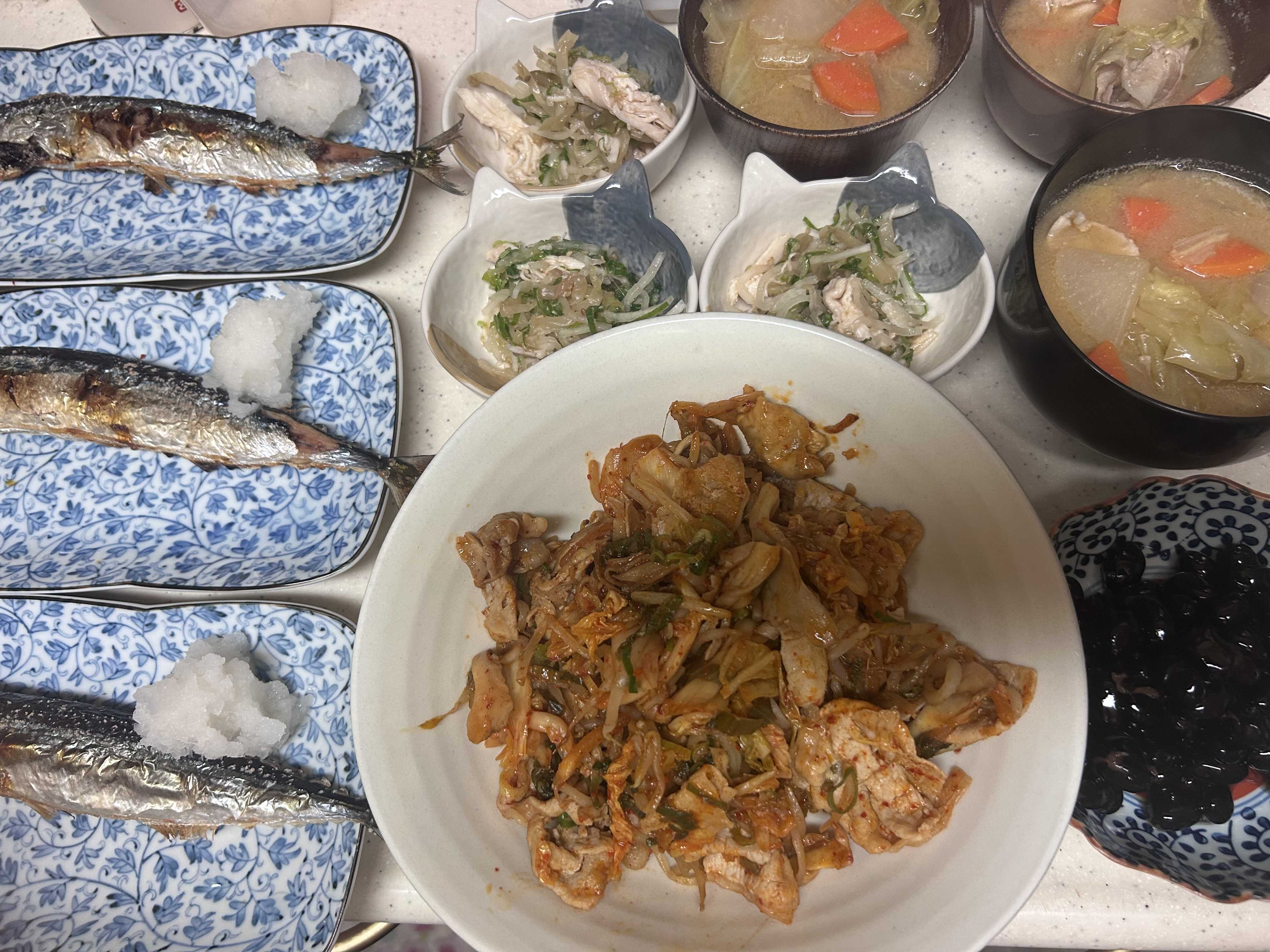 明明後日、やっと退院です☺️今夜と昨夜は外泊で自宅にいたので夕飯作りましたー🍽️夕飯を作る感覚がやっと戻ってきましたね😉今夜は、・秋の終わりに秋刀魚・舞茸入り豚キムチ・豚汁・黒豆・ザーサイと大根と水菜とささみのナムル(お惣菜) 以上冷蔵庫の余り物で作ったようなもんですが、夕飯らしい食事が出来ましたよ♪昨晩は、大根と豚肉の煮物作りましたー。これは↑病院食が美味しかったので真似て煮物作ったんです🎵入院費とられるから、お返しでレシピ盗んできてます🤭あー、お腹いっぱい👍最近はほんと、食欲の秋って感じになってます!痩せはしないけど、たくさん食べても太りはしてません😃皆さんも、食事は副菜もしっかり摂ってバランスの良いものを心がけて下さいね😉