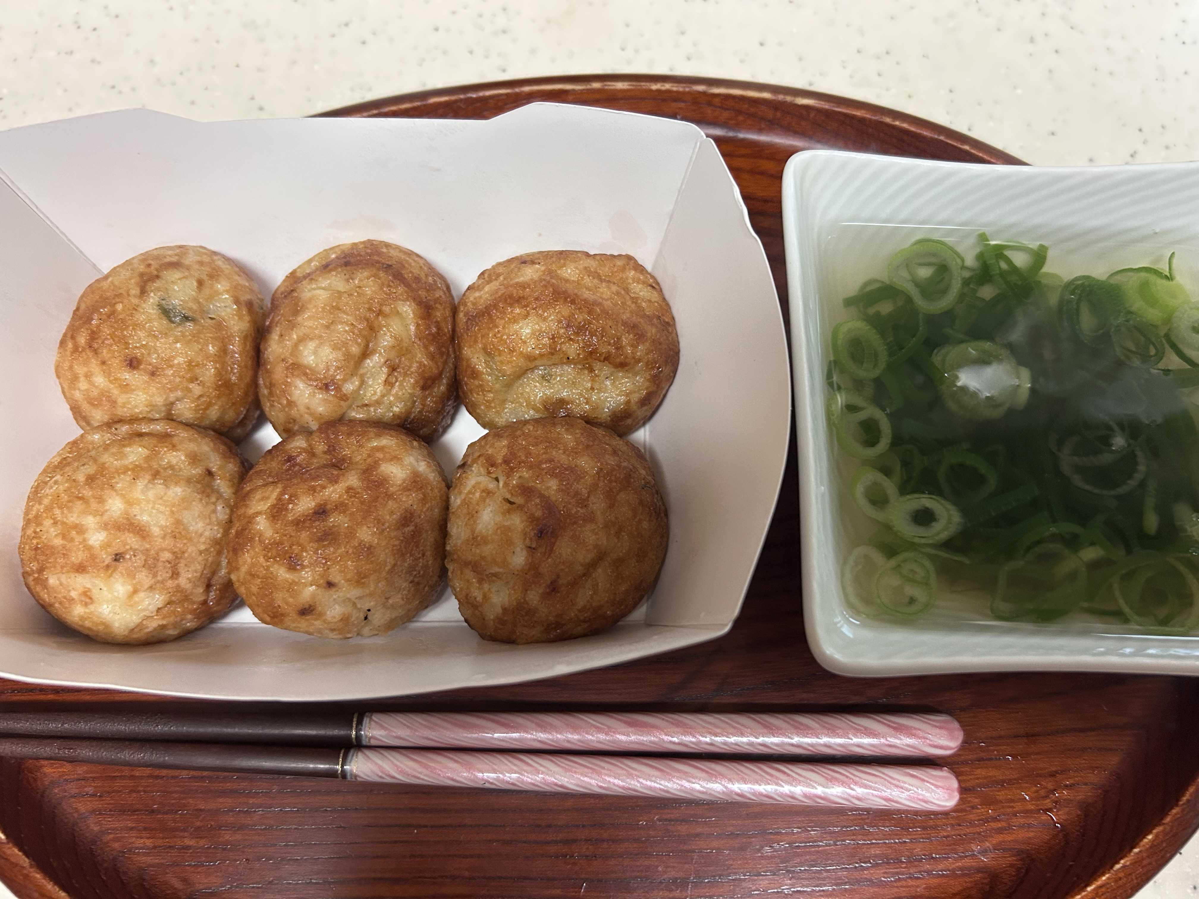 やっぱり、睡眠の眠剤の調整はしっかりして帰りたい!という事で、退院する日を延ばしてもらうことにしました。外来で通うより安心感があります💡そんな私は本日も外泊を1泊でさせてもらってます。家と病院を行き来して通勤気分?でも、遊びに行ってるわけではなくちゃんと治療をしてもらうための入院です🏥寒くなって来たからオシャレも楽しみたいし、自宅ではファッションショーしてコレ持って行こうとかやってます。呑気なもんですよね🤣そして、外泊すると絶対に食べたくなるのが粉物です。特にたこ焼きが食べたくなり、たこ焼きLOVE❤️な外泊が続いてます。カロリーは高くないのに太ることがありました。なので、ネットで調べてソースとマヨネーズをカロリーオフ出来るものに変えてあげると太りにくいということで、先ほど明石焼き風に、つゆを作って食べてみました。たこ焼きは、冷凍のスーパーで売ってたもので6個入り314kcalです💡明石焼き風のつゆは適当に水と白だしを入れて沸騰させ、粉末顆粒出汁と九条ネギをいれて沸かせたものです。さっぱりとしてて、とても美味しかったです🐙粉物は美味しいけど、腹持ちが悪いってのが難点ですが美味しく頂けてよかったです😉