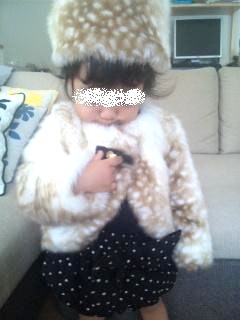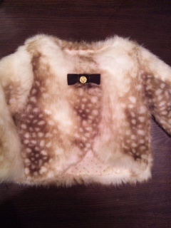 夏の盛りからあたためていたお気に入りのファー生地まだまだ暑かった先月末からちょこちょこ進めて・・・さっきやっと完成しました!!Liも寝たし、ダンナもまだ帰ってこなくて暇なので早速UP~バンビファージャケット可愛い~満足です~