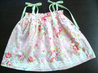 こんばんは☆プリンセスローズシリーズ、やっとサンプルできあがりました♪ピンク、ブルーの二色で各三点ずつくらいお作りできますピンク(2300円送料別)胸から肩にかけてのレース着画ですブルー(2300円送料別)胸から肩にかけてはゴム入りフリル(※この色が一番実物に近いです)着画ピンク、ブルーどちらも胸元~肩へのフリルORレース、裾の生地をお選びいただけますフリルと裾のお選びいただける生地は、ギンガムチェックか身頃と同じ布になります。ギンガムチェック(画像はお借りしています)※イエロー、ブラウンは手元にはありませんが取り寄せ可能です☆また、ローズワンピの型↓(2000円送料別)でもお作り可能ですのでご希望の型はご注文時にその旨お伝え下さいませ♪ご注文方法はこちら今回は少し長めになっておりますので、(80~90のサンプルサイズで胸下40センチです)ご希望の着丈もお教え願えると助かります☆細かいご要望なども承りますのでお気軽にメッセージ下さいませなお、夏物はこちらで終了の予定です~よろしくお願い致します