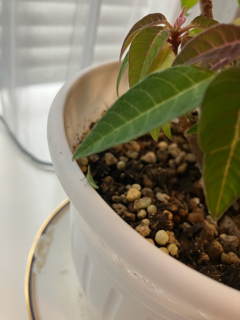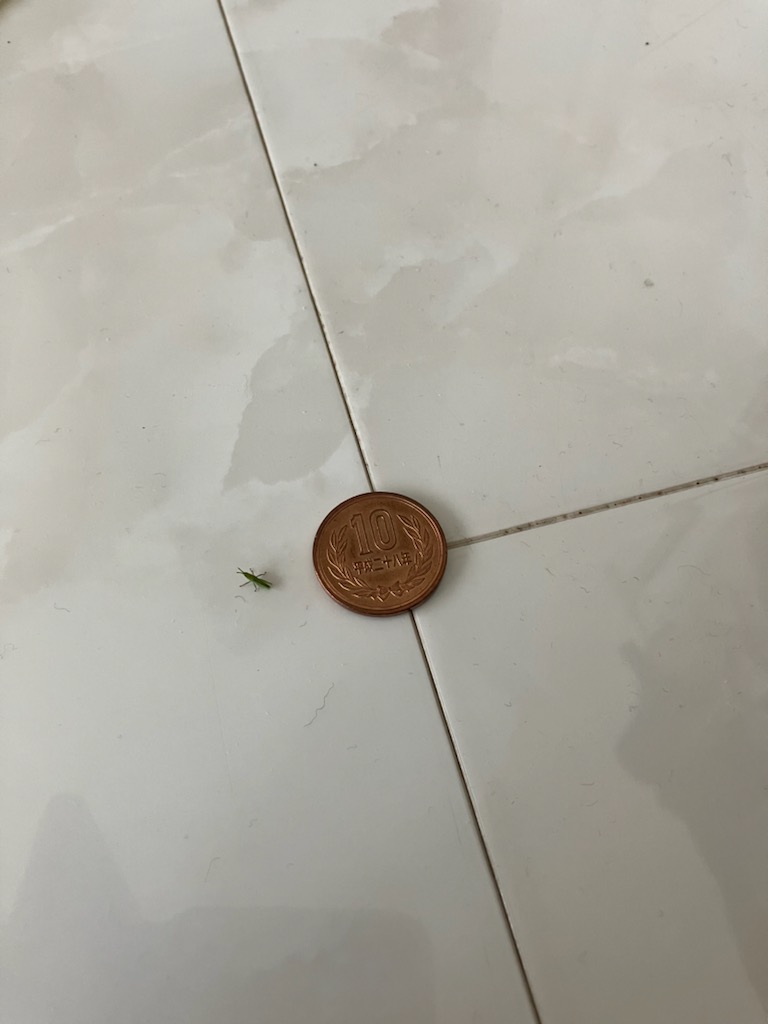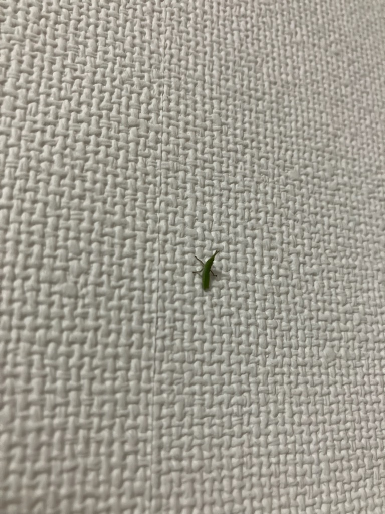 3日前、リビングの出窓の上で、緑の小さな生き物を見つけた。なんと、バッタの赤ちゃん。数匹いる。こんな小さなバッタ、今までに見たことがない。外の葉っぱの上では、成虫のバッタはよく見かけていた。2022年7月には、キョンと名付けたバッタのことブログに書いたっけ。どこから来たのかなぁ??多分、去年の11月末に、外から家の中の出窓に置いた鉢だね。バッタは、土の中に卵を産むみたい。その卵が孵ったんだ。ビニール袋で捕まえて、つぶさないように外に逃がしてあげました。床に落ちても平気です。