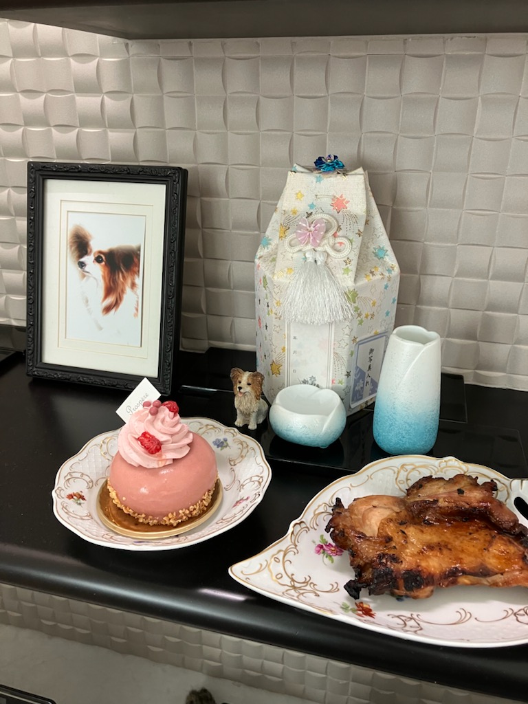 元旦は、パパも次お兄ちゃんも急遽行くことになり、鈍行でちんたらとお節など持って、3人で甲府へ向かった。時間がかかったけれど、窓の外や人を眺めたり・・のんびり行くのも悪くないね。2日は、おばあちゃんのホームへ。大晦日に長姉の家で夜中に尻もちをついたおばあちゃん、3泊の予定が、1泊でホームに戻った。夕方から、近くの叔母の家で女子会。おもてなし上手な叔母が、花びら餅と抹茶を点ててくれ、鯛めしや煮物、千枚漬けなどご馳走してくれた。今日3日は、一日家に。ご近所は、ひっそりとしていた。お正月の過ごし方は、様々。初詣に行かなくても、お節を食べなくても、みんなでワイワイしなくても、何だっていいんですよね。チェリーがいた頃は、一番にお散歩してたなぁ。久々に従妹と会い、楽しい女子会でした。