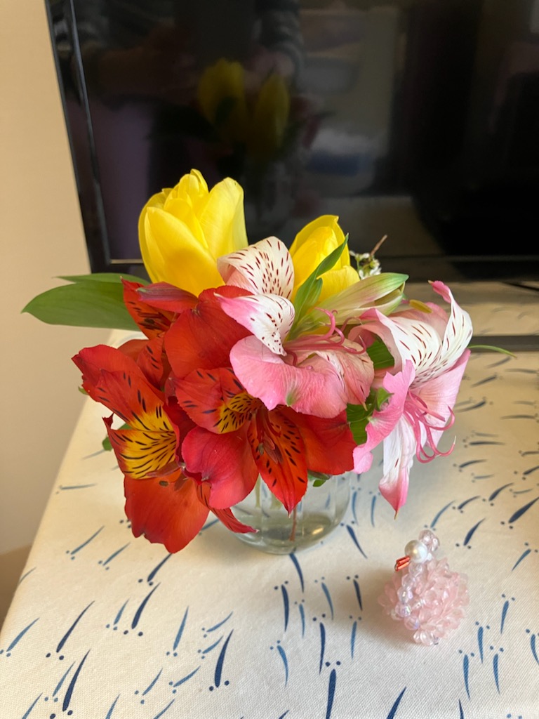 4月7日は、おばあちゃんの誕生日。一週間ぶりに、姉とホームに行って来た。「今日は、誕生日だね、何歳になったの?」と、尋ねると「91歳かな?」と、答えていた。数か月程前から、たまーに、とんちんかんなこと言うようになった。これって、認知症の初期症状?物忘れをするのは、仕方ないけれど・・しらばっくれているのかな?分かっているのに、知らないふりしてとぼけているかな?実際のところ、どうだかわからないけれど・・SOSのサイン?現状を、今の生活を受け入れられないのかもね。でも、他の入居者のお仲間から、羨ましがられている。頻繁に、色んな人が来てくれてお幸せですね、と。明日は、おばあちゃんの二人の妹が行くみたい。仕事でいただいたお花、飾りました。
