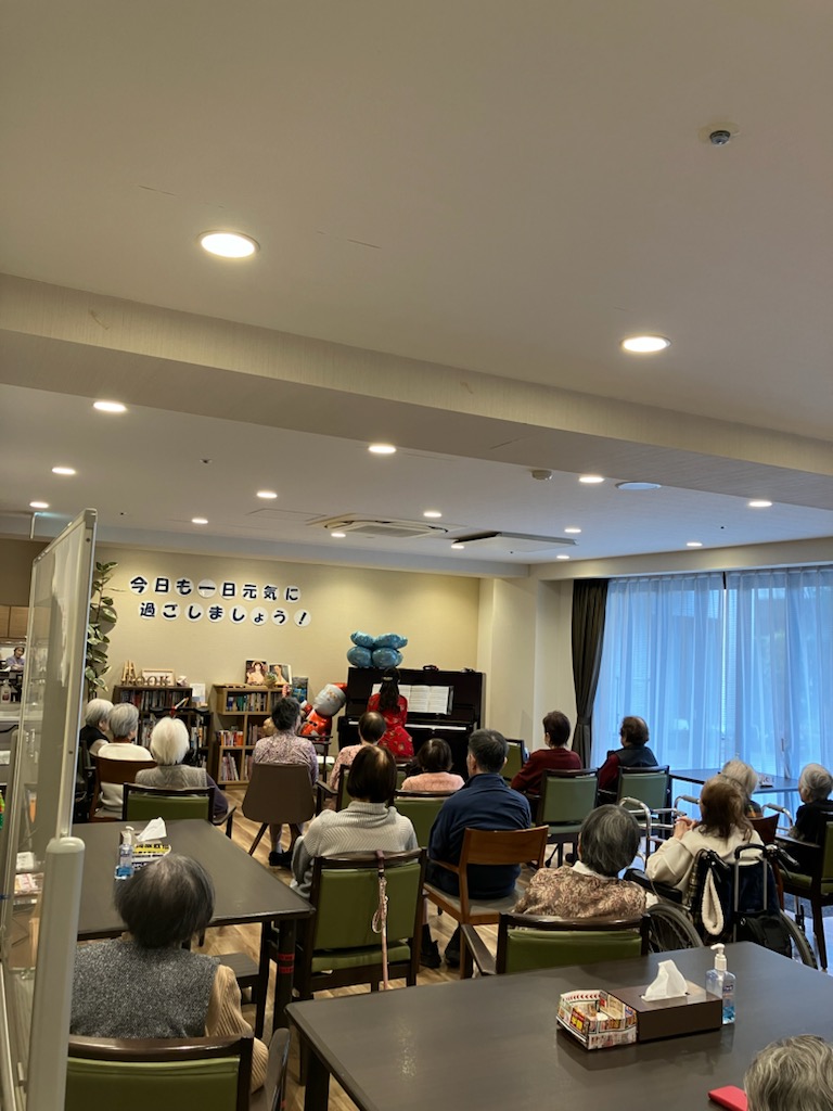 クリスマスの25日、おばあちゃんのホームでコンサート。次姉Y子の長女が、みんなにピアノを聞かせたいと時々やって来る。いつもは、クラシックに唱歌、懐かしのメロディーなど。この日は、もちろんクリスマスソングメドレーでスタート。なんと、次姉Y子とママが、鈴、マラカス、タンバリン、カスタネットを担当。こんな楽器は、小学校以来。リハなしのぶっつけ本番でも、完璧(?)そして、リストの「愛の夢」などクラシックでしっとりと・・最後に、もういくつ寝るとお正月~をみんなで合唱して〆ました。みんな、喜んでくれました