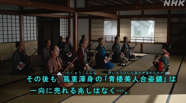 2025年NHK大河ドラマ 『べらぼう〜蔦重栄華乃夢噺〜』 の感想です。今回の話の中で全体を通して感じられたキーワードは「男なら」だと思いました。𠮷原からは絶対に外に出られない女郎たちの涙を見た富本豊志太夫(寛一郎さん)は「男なら断れない」と。主家の家老が鱗形屋孫兵衛(片岡愛之助さん)に酷いことをしたのを「忘れるのは男ではない」と、その埋め合わせを心に決めた倉橋格(岡山天音さん)。でも私はがいちばんグッときたのは、身請けした瀬以(小芝風花さん)を心から愛する鳥山検校(市原隼人さん)の言葉と行動でした。たとえ自分の気の進まないことでも、瀬以が望むことならば、少し時を置いて考えて、自分なりに納得できるとなったら行動しているのです。「そなたの望むことは全て叶えると決めた。」これはもう感動のセリフでした。周囲から大事にされるのが当たり前の人には、あるいは幸せに常に満たされている人には、この言葉の重大さがわからないと思います。でも女郎だった瀬以には、何より有難い言葉でしょう。地位が低い女郎は男に金でいいように扱われ、血のにじむ努力をして花魁になっても、自分は男の名誉欲を満たして話のネタになるだけでした。でも鳥山は、心から自分を大事にしてくれて、何かあればそれが言葉や行動となっているのがわかります。心の中にはまだ蔦屋重三郎(横浜流星さん)がいて思いを消すことはできないけど、自分のために鳥山に無理をさせたくない、鳥山を悲しませたくない、旦那様として仕えたい、そういった思いは瀬以の中にあると思います。こちらでは様々な意見がでていて参考になります。 ⇒ ⇒ #大河べらぼう #べらぼう 花魁・瀬川の身請けの旅立ちと共に蔦屋重三郎(横浜流星さん)が大々的に売り出した女郎の絵本の『青楼美人合姿鏡』。しかしこれは鶴屋喜右衛門が予想したとおり、高価で庶民に売れるようなものではなく、本の製作のために重三郎に金を貸している女郎屋の親父衆は、本が売れないことに苛立っていました。そんな折に若木屋の与八は、先日この親父衆と決別した鱗形屋と組むと宣言し、吉原の中に対立ができてしまいました。そして重三郎はというと、『青楼美人』が売れない代わりにこの本を馴染みの客に配って返済金代わりにして欲しいなんて言うものだから、親父衆は怒りの三味線かき鳴らし。(今で言うブーイングか・笑)重三郎はその後は主人の駿河屋市右衛門(高橋克実さん)から、毎度の怒りの階段落としをくらいました。安永5年(1776)4月、江戸城では8代将軍・吉宗公以来48年ぶりとなる日光社参が出立、出立だけで12時間もかかる大掛かりなものでした。𠮷原から出られる大文字屋市兵衛やりつらは道中の見学に出ていて、彼はその長い長い行列と人々の歓声から何かをひらめいたようでした。一方、重三郎は市中の本屋で唯一自分と関わりを持ってくれる須原屋市兵衛(里見浩太朗さん)に、『青楼美人』が思うように売れなくて親父衆への借金だけが残ったと愚痴をこぼしていました。須原屋市兵衛はそんな重三郎を「𠮷原を昔のように憧れの場所に戻したいなら、一度くらいのつまづきでしょげることはない。」と励ましていました。重三郎が親父衆に呼ばれて行ってみると、そこでは𠮷原に人を呼ぶために“俄”の祭りを開いてはどうかと話し合われていました。そしてその祭りに世間で人気の馬面太夫を呼びたい、でも親父衆の中には太夫への伝手がない、平賀源内や勝川春章(『青楼美人』を描いた絵師)なら伝手があるかもしれないから重三郎から当たってくれないか?ということでした。りつ(安達祐実さん)は重三郎が豊志太夫のことを全く知らないので、次郎兵衛(中村蒼さん)も連れて浄瑠璃を見に行くことにしました。重三郎は芝居の前に立ち寄った本屋で浄瑠璃の正本を見て、「直伝」の文字があるものとないものに気がつき、直伝があるものは浄瑠璃の本元の太夫の許しを得ているものだ、とりつから教わりました。芝居小屋に入ると中は豊志太夫と役者の門之助を贔屓する主に女性の客であふれ、浄瑠璃が始まるとその世界に重三郎も思わず引き込まれてしまいました。これは何としてでも豊志太夫を𠮷原の祭りに呼びたいと思った重三郎は、太夫が外に出てくるのを待ち、自己紹介して交渉しました。しかし太夫はなぜか𠮷原を嫌い、そして太夫には鱗形屋孫兵衛がぴったりと付き添い、太夫をどこかに連れて行ってしまいました。鱗形屋の行動と、太夫は間もなく「富本豊志太夫」を襲名する予定という話からりつは、鱗形屋は太夫からの直伝の正本を狙っていると考えました。そう聞いた重三郎の頭の中には、自分が太夫から直伝を取りつければ𠮷原が繁盛するに違いないと空想が浮かびました。ただ太夫の襲名の話は、実はこの時また白紙に戻されていたのでした。𠮷原を嫌う豊志太夫をなんとか𠮷原の祭りに呼びたい重三郎は、伝手を頼って平賀源内(安田顕さん)の元を訪れていました。