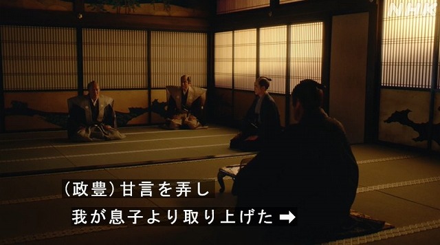 (このシーン、政豊役の吉見一豊さんは話に耳も貸さずずっと刀をいじっていて、