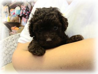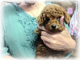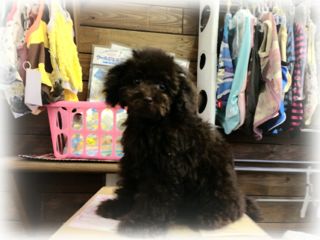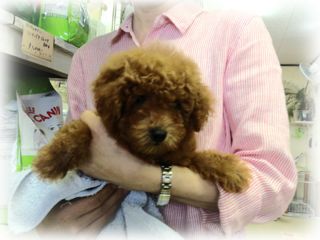 店長ん家のトイプー「チップ&ラン」カップルの子! かれこれ30日も過ぎ、ちょうど愛らしくなってきた今日この頃・・・ って((((;゚Д゚)))) 離乳食始めてたのでお店に連れてきてるんですが、早々にご縁がありました(。・ ω