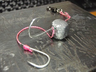 今日、HDDレコーダが勝手に録画してた釣り番組を何本かまとめ見した。え?お前はこの日曜の朝に釣りにも行ってないのか?という突っ込みはなしの方向で・・・。紆余曲折ございまして、ここんところ沖へ出られてません。ストレスMAXです。しょうがないので、今晩オカッパでも行ってみようかと・・・。***あ、書きたいこと忘れてた。その釣り番組ででてた1本テンヤを使った鯛の餌釣り。これおもしろそう。タックルは、メバなどのティップの柔らかいロッド+スピニング。ラインはPE1号、リーダ2-3号くらい。テンヤはこんなやつ。メインフックに孫針が付いてる。TVの孫針はケイブが浅くておもっくそネムってた。おそらく餌釣り用のものだな。メインフックに餌(海老)をつけてGOGO。船は、どてら流しでシーアンカーで調整。底をとって軽いしゃくり。あたりは、ラインで取ることが多いみたいですねぇー。(糸フケや、ピョンとラインがはじかれる感じかな?)こりゃ餌は使うけどゲーム性が高そうだ。画期的過ぎる。これがまためちゃくちゃ釣れるんですよ。ボカスカ釣れてる。
