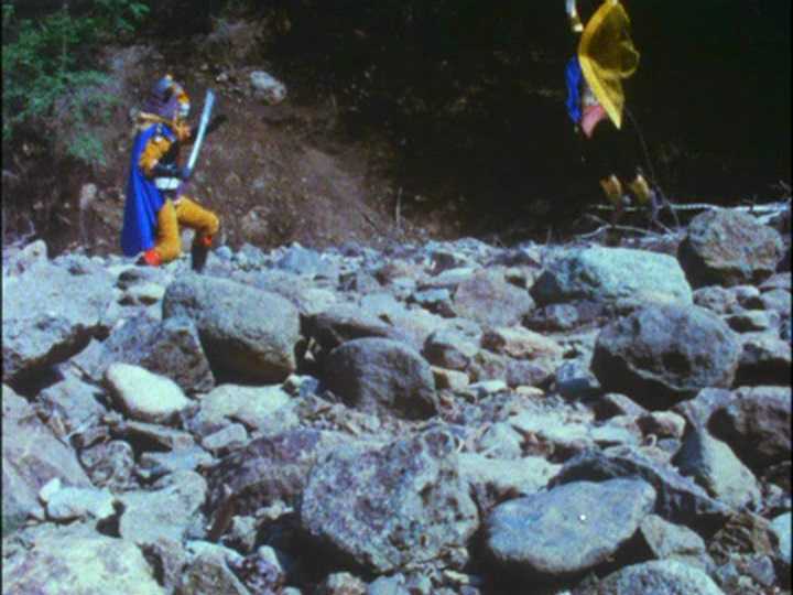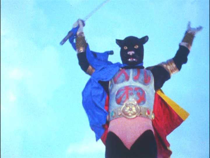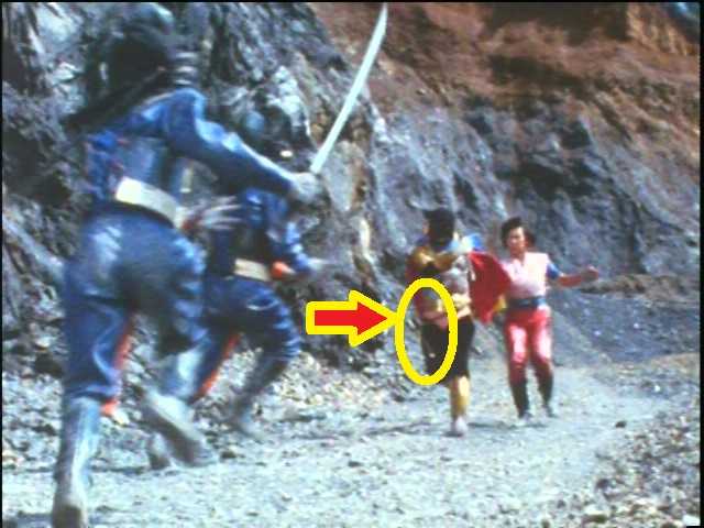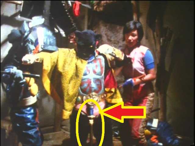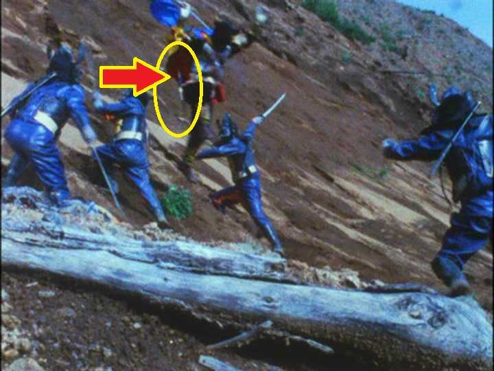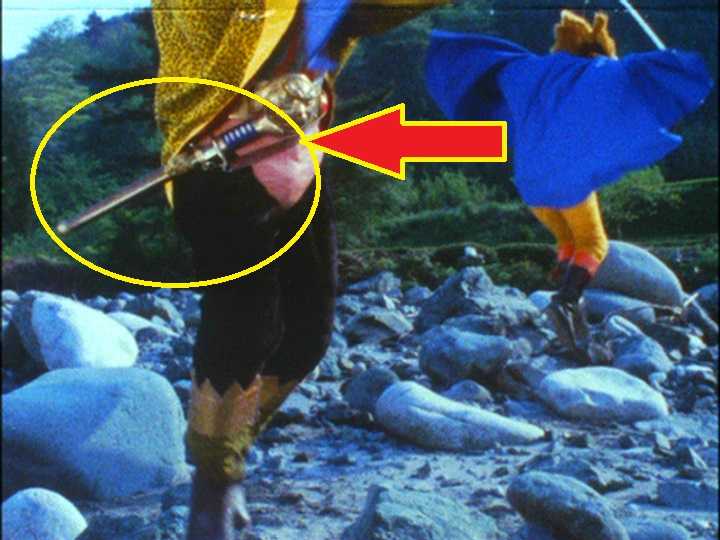 この後のブラックジャガーへの変身シーンはありませんが、最後に、地虫忍者たちを斬り倒すシーンでも、短剣をしっかり所持していることがわかります