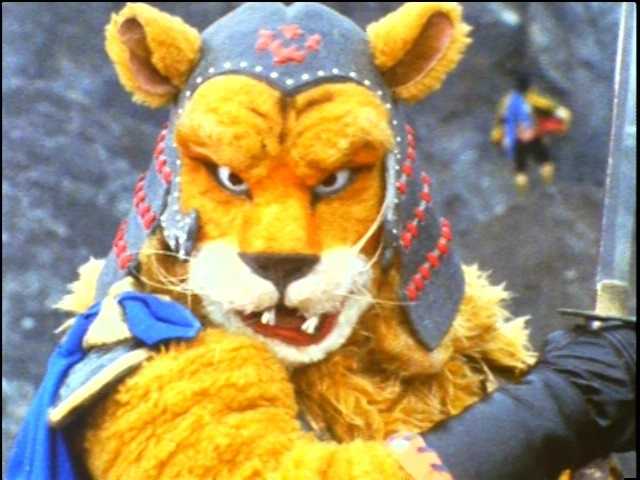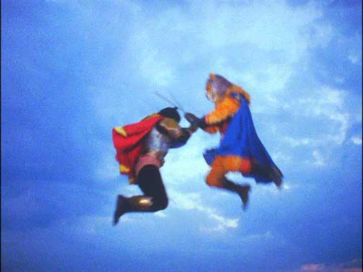 実は、途中、ライオン丸と飛び上がり、剣を交えるシーンがある