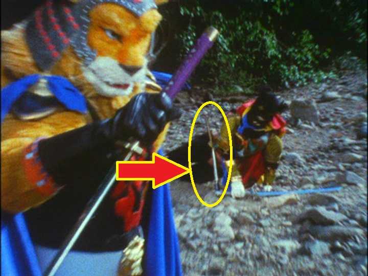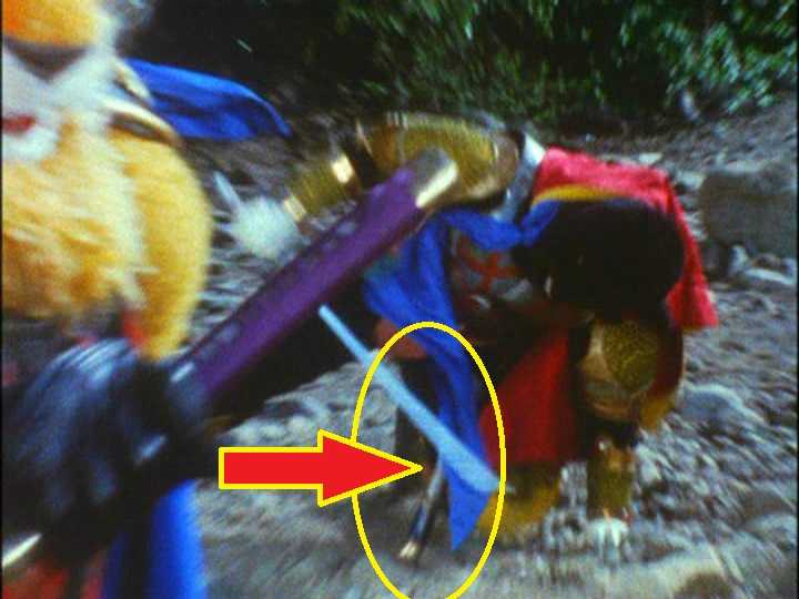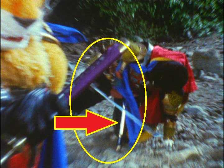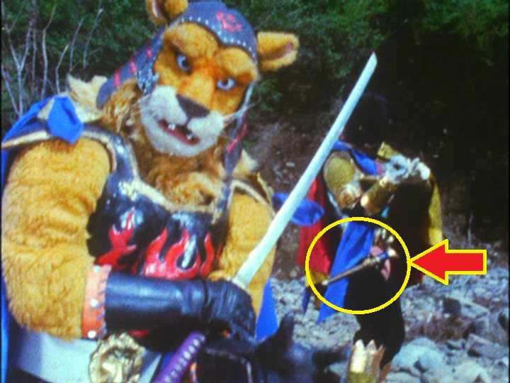 そして、次のシーンで、ブラックジャガーが、ライオン丸の腕を斬った(斬らせてもらった??)ときも短剣はある