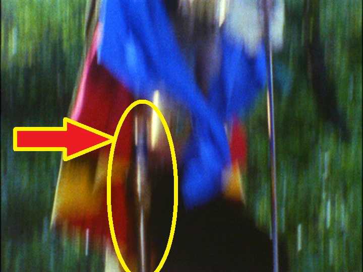 これは、クレーンでつりさげられたものではなく、たぶんトランポリンのようなものを使って飛び上がったのではないかと思う