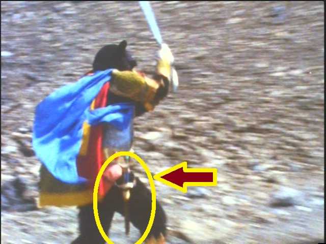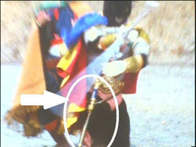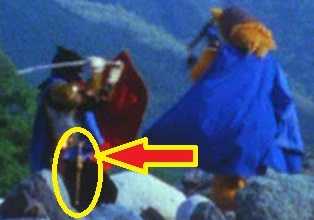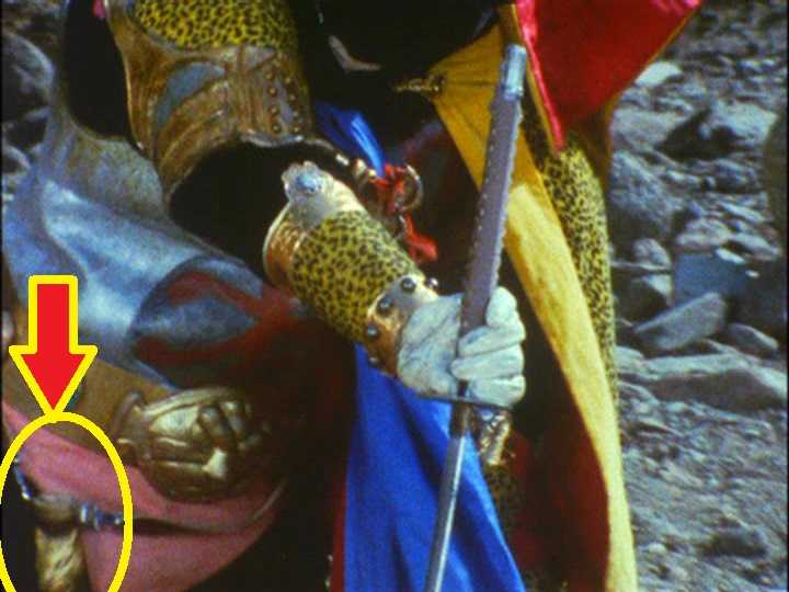 短剣および鞘(さや)・ベルトは、撮影に危険とみなされたのだろうか?単に忘れたのだろうか?不明!!