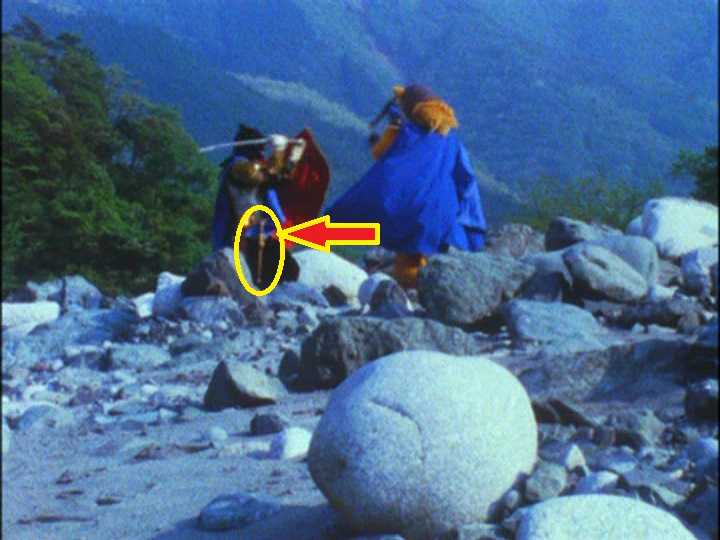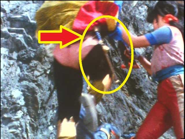 ここで、変身は二回行い、飛び上がるシーンは先ほど言ったようにフィルムの使いまわしで同じなので、短剣は存在します