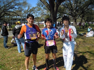 今日のスタートは朝7時。6時にRFさんとコスメルさんがホテルまで迎えに来てくれて、3人で歩いてスタート地点に向かった。実は今回のコースは 3ヶ月前に発表されたのだが、昨年とはコースが変わっていた。3人とも前回のスタート/ゴール地点であったルイジアナスーパードームの近くのホテルに宿泊していたので、スタート地点までは徒歩で30分弱、しかも今回はスタートとゴールが別の場所になったため、荷物も預けなくてはならなかった。ただ、スタート会場はだだっ広く、トラブルなくことが進んだ。ひとつのコラル (アメリカではスタートのブロックのことをこう呼ぶ) に800人ずつが割り振られ、そのコラル内にもそれぞれ4個の仮設トイレが設置されていた。スタートは1、2コラルが号砲と同時にスタートし、その後はひとコラルずつ、1分間隔でウェーブスタートだった。 スタートからそんなにとばしたつもりはなかったが、なかなかペースを維持できない。理由は簡単。今日の最高気温は60?F (約15℃) で、その気温に身体が対応できていなかったのだ。それでもほぼフラットなコースで、沿道にはロックンロールマラソンシリーズらしくバンドの演奏などもあり、トイレ休憩を含みながらも何とか3時間44分19秒で完走できた。これでアメリカのフルマラソン、3州目 (ルイジアナ州) 制覇となった。 日本人3人ともほぼ同じようなタイムでゴールしたため簡単に合流でき、一緒にゴール会場を散策した。荷物受け渡し場所とシャトルバス乗り場がゴール地点から遠く改善の余地はあると思われたが、ダウンタウン行きのシャトルバスには現地のスクールバスを利用していて、シャトルバスの行列がランナーを待っているような状態だった (主に観光バスを利用している日本では考えられない)。完走メダルはとても重く、しかも紐の部分がビーズのようになっているため、首から下げているメダルの紐が切れてメダルを落してしまう人が続出していた。ちょっとありえない光景だった。 ダウンタウン行きのシャトルバスの降り場が私の宿泊しているホテルの目の前だったので簡単にホテルに戻ることができたが、チェックアウト時間が過ぎていたので、フロントに「すぐにチェックアウトするから」と言って部屋に戻り、急いでシャワーを浴びてからチェックアウトした。チェックアウト後もホテルのロビーで無線LANが使えたのでメールチェックなどしていたら、知らないおじさんがやって来て「もう結果は出ているか?」などと訊いてきた。 その後再び3人で合流してタクシーで空港へ。一緒に昼食をとり、再会を約束してそれぞれの帰途についた。ダラス経由の安い航空券を選んだのでフィラデルフィア到着は午前0時半過ぎで、自宅に着いたときには1時半をまわっていた。長い長い旅行がようやく終わった。本日のラン 42.2km (3時間44分19秒) マルディグラマラソン(月間走行距離 287.0km)(週間走行距離 62.6km)