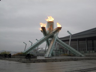 今日は朝からオフィシャルショップに出向きお土産を物色。しかし、あまりにも広すぎて何も選べず。ビブスやトーチのレプリカも売っていた。結局お土産は値下げが始まっていたショップで買うことにした。日本食屋でカツ丼を食べてから市内を散策しながら聖火を見に行ったが、何とそこでキムヨナのコーチであるブライアンオーサーを目撃した。危うく皆で襲撃しそうになった。ちなみに聖火は、壊れた煙突が火を噴いているような感じだった。 私ひとりで今日バンクーバーを発つことになっていたので、一旦ホテルに戻りゆっくり帰国 (アメリカへ) の準備をしながら日本にいる奥様にスカイプを繋いだところ、たまたま日本のテレビで女子フィギュア選手が生出演している時間だった。生の声が聞けて皆大喜びだった。 夜8時過ぎの飛行機でバンクーバーとさよならし、大雪の東海岸へ向かった。本日のラン なし