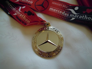 今日はアメリカに来て初めてまともに走るフルマラソン。ホテルの部屋をスタート40分前ぐらいに出て、選手の波についていくとすぐにスタート地点に到着。これまでフィラデルフィアで寒い思いばかりしていたので、スタート時の気温が1℃でも風がないので全く寒くない。そして、全く混雑していない。自然に最前列付近に位置してしまう。スタート時間が迫ってきても全然ピリピリした雰囲気はなく、天使の格好をした変なおじさんや、上半身裸で胸にマジックでチーム名 (?) を書いてる人などがスタートラインの前方から列に加わってくる (上の写真はスタート約20分前の様子)。最終的にはスタートラインから2列目に位置した。スタートはカウントダウンもなく、しかもピストルが空砲だったためひとりだけしかスタートしなかったが、その人がスタートラインに戻ると係の人たちが慌てて「行け行け」とスタートを促し、ようやく集団が動き出した。おそらくネットタイムとグロスタイムが同じ人はひとりだけだと思う。私のスタートロスタイムは数秒だった。最初の1マイルの表示は見つけられず、2マイルの通過は約15分。ディズニーマラソンでもそうだったが、こちらのマラソンは1マイルごとに時計が置いてあるのが標準なのか。今大会はアメリカ陸連公認コースで行われているので距離は問題ないはずだが、2マイルから3マイル、15マイルから16マイルの距離がちょっと怪しい気がした。 スタート/ゴール付近 (周回コースなのでハーフ付近も) は市街地なのでほぼ平らだが、それ以外はけっして大きくはないが細かいアップダウンが続く。前半からほぼ一定のペースで進み、ハーフ付近を約100分程で通過したようだ。スタートから、ハーフとリレーのランナーも一緒だが、ハーフを過ぎると一気にランナーの数が減ってしまった。後半も何とか持ちこたえたが細かいアップダウンがボディーブローのように効いてきて、ラスト2マイルで足が止まってしまった。結局ゴールタイムは3時間25分34秒 (ネット) だった。昨秋のスパルタスロン以降は大会で長い距離をまともに走っていなかった (いずれも医療支援かファンラン) ので、今シーズン初戦ということになるが、それにしては上出来の結果だった。 完走メダルはメルセデスベンツのエンブレムを模したものでキラキラと輝いていた。レース後はアイスの無料配布や食事の提供などがあり、ホテルもチェックアウト時間を午後1時まで遅らせてもらえたので、余裕でシャワーも浴びれた。空港へはホテルのシャトルバスを利用し、帰りの便はフィラデルフィアまでの直行便だったので、あっという間に帰宅することができた。 順位は総合88位、男女別73位、年代別13位だった。10km、15km (実際は10.4マイル (約16.7km))、25km、30km、ゴールのタイムと順位を速報でホームページで確認できるのだが、後半失速した割には各チェックポイントでの年代別順位は16位→14位→13位→13位と落ち込まずに粘れたようだ。これでアメリカのフルマラソン、2州目 (アラバマ州) 制覇となった。 後日、正式な結果が出て、途中のチェック地点が10km、16.6km、24.2km、29.0kmに訂正されていた。(2/19追記) ↓大会の様子はこちらもどうぞ。 http://ameblo.jp/doraraxx/entry-10459519845.html本日のラン 42.2km (3時間25分34秒) メルセデスマラソン (月間走行距離 148.5km)(週間走行距離 90.5km)