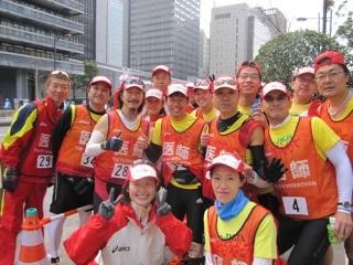 写真は今年の東京マラソンでランニングドクターの役割を果たした仲間たちの出走前の姿。