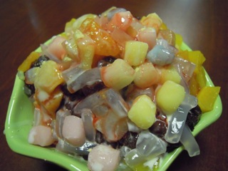 帰りはSoon Yewと待ち合わせて韓国料理屋へ。締めでかき氷を食べた (写真)。ここ数日はそれほどの陽気が続いている。かき氷にはフルーツ、小豆、ナタデココ、餅などがのっていて、文字通り盛り沢山。