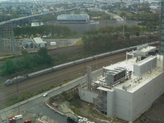 写真は私のデスクの窓から見えるアムトラックの列車。