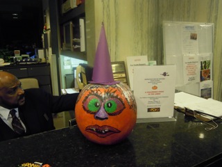 写真はうちのフロントデスクに置いてあったカボチャ。ハロウィーンのイベントが行われていたようだ。